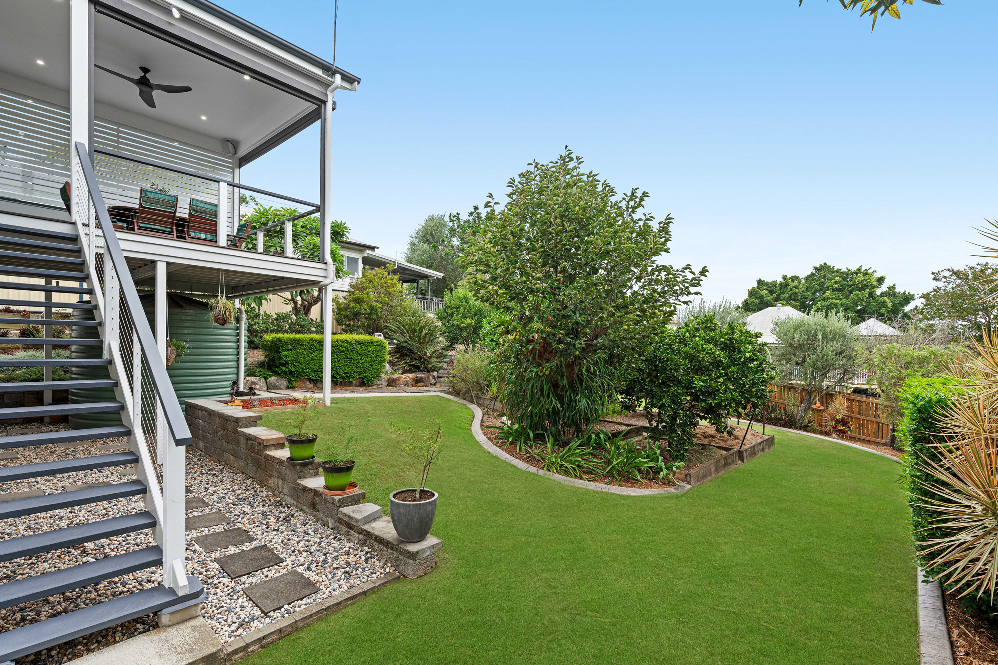 • The “edible” garden featuring an abundance of produce including Tahitian lime, Meyer lemon, Navel orange, Mandarin, mango, and olive trees, supported by a 13,500L plumbed water tank
