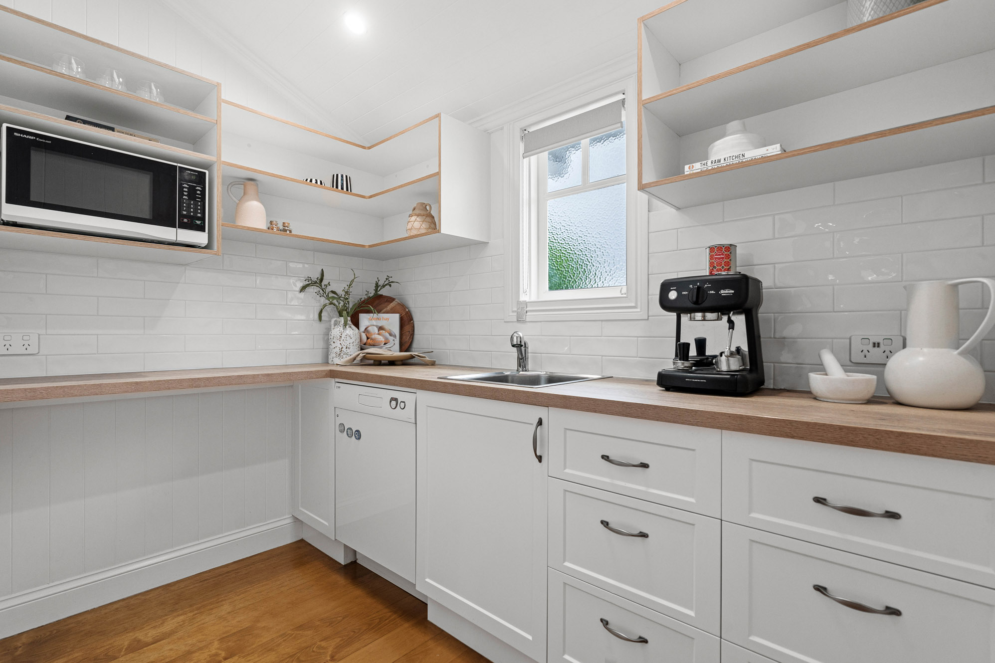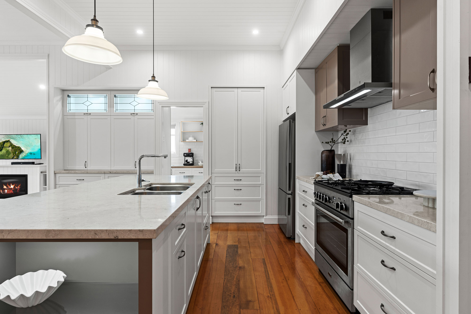 • Massive entertainer’s kitchen acting as the heart of the home with 1.5 dishwashers, a large butler’s pantry, and a clever bi-fold appliance cupboard to keep stone benchtops pristine