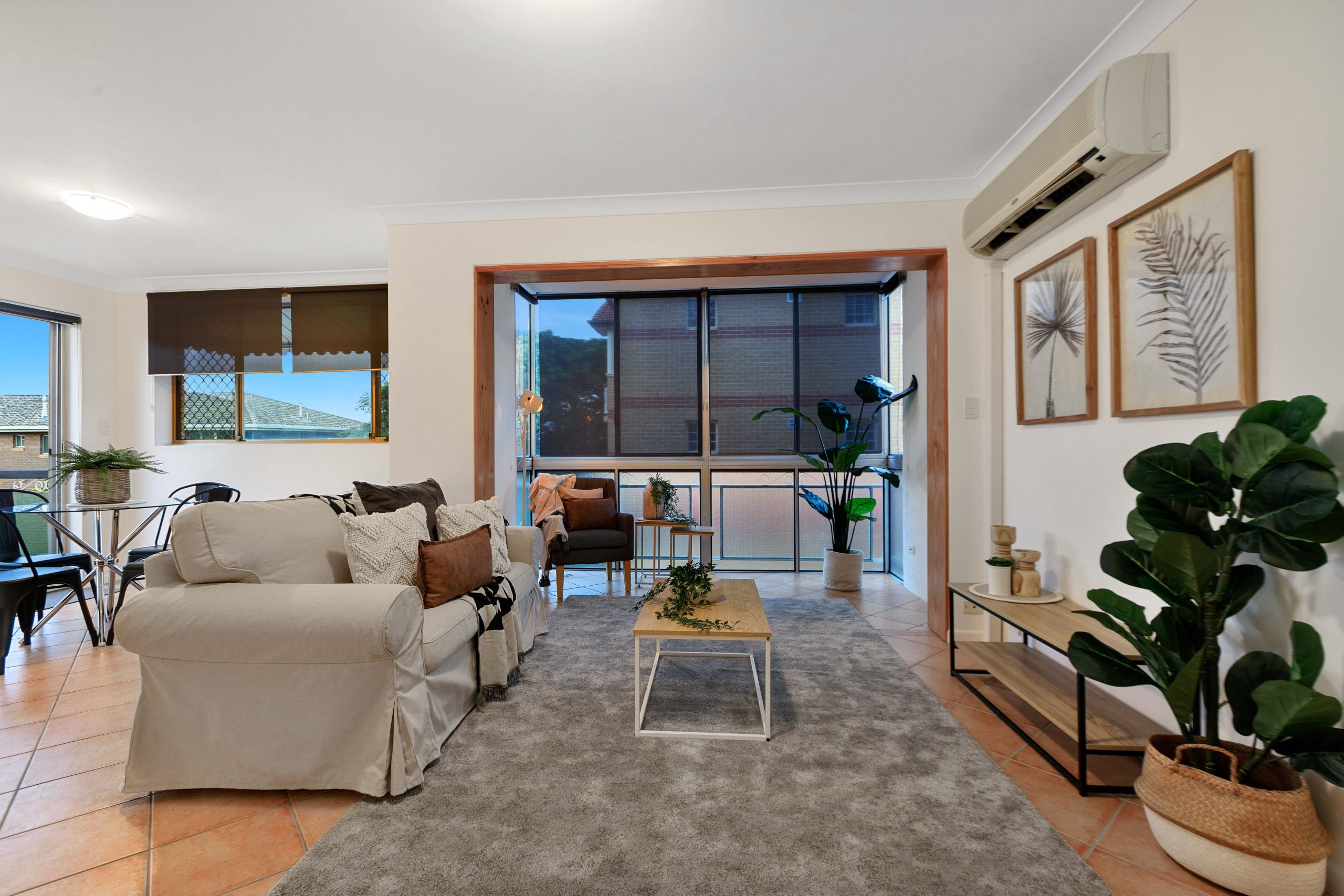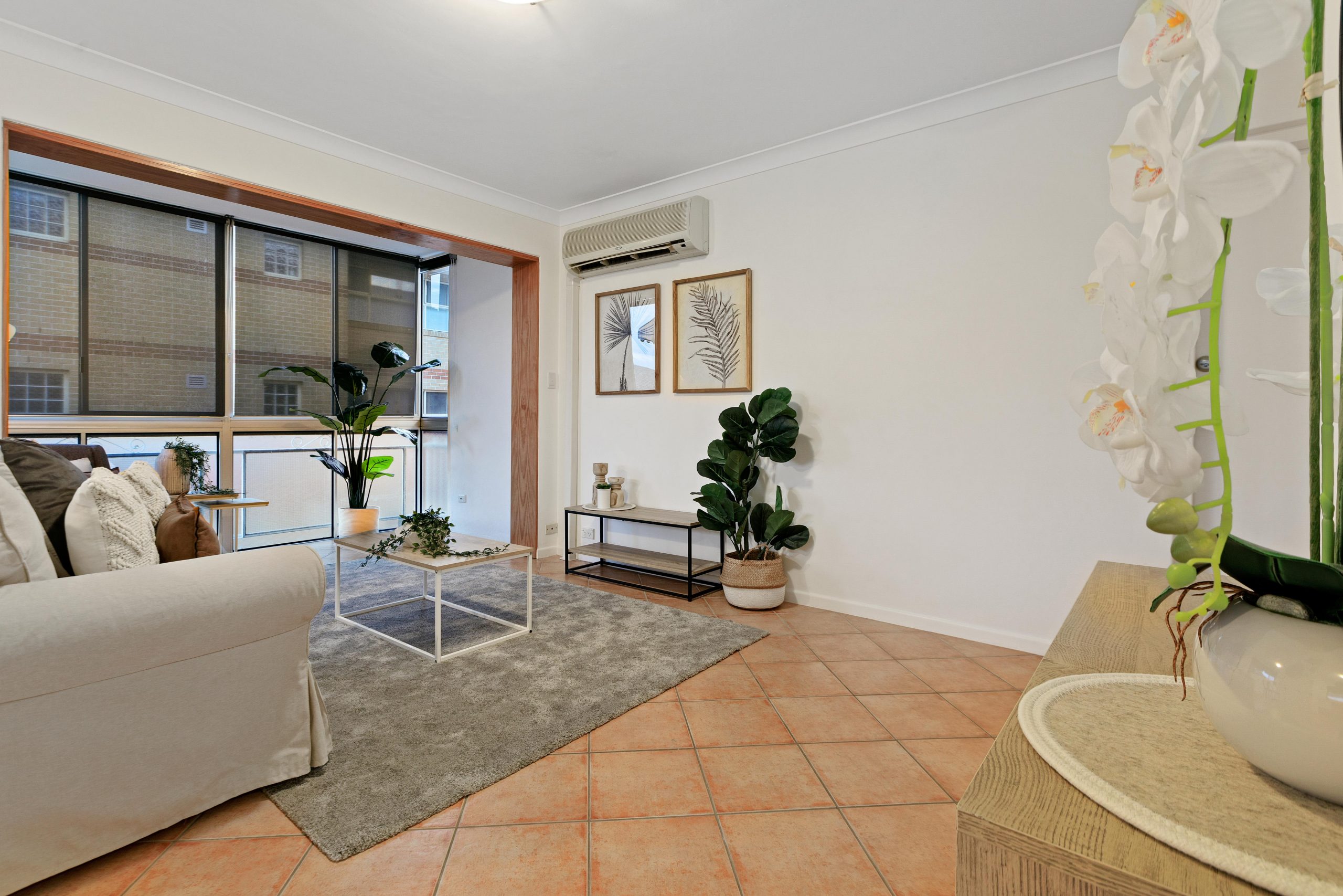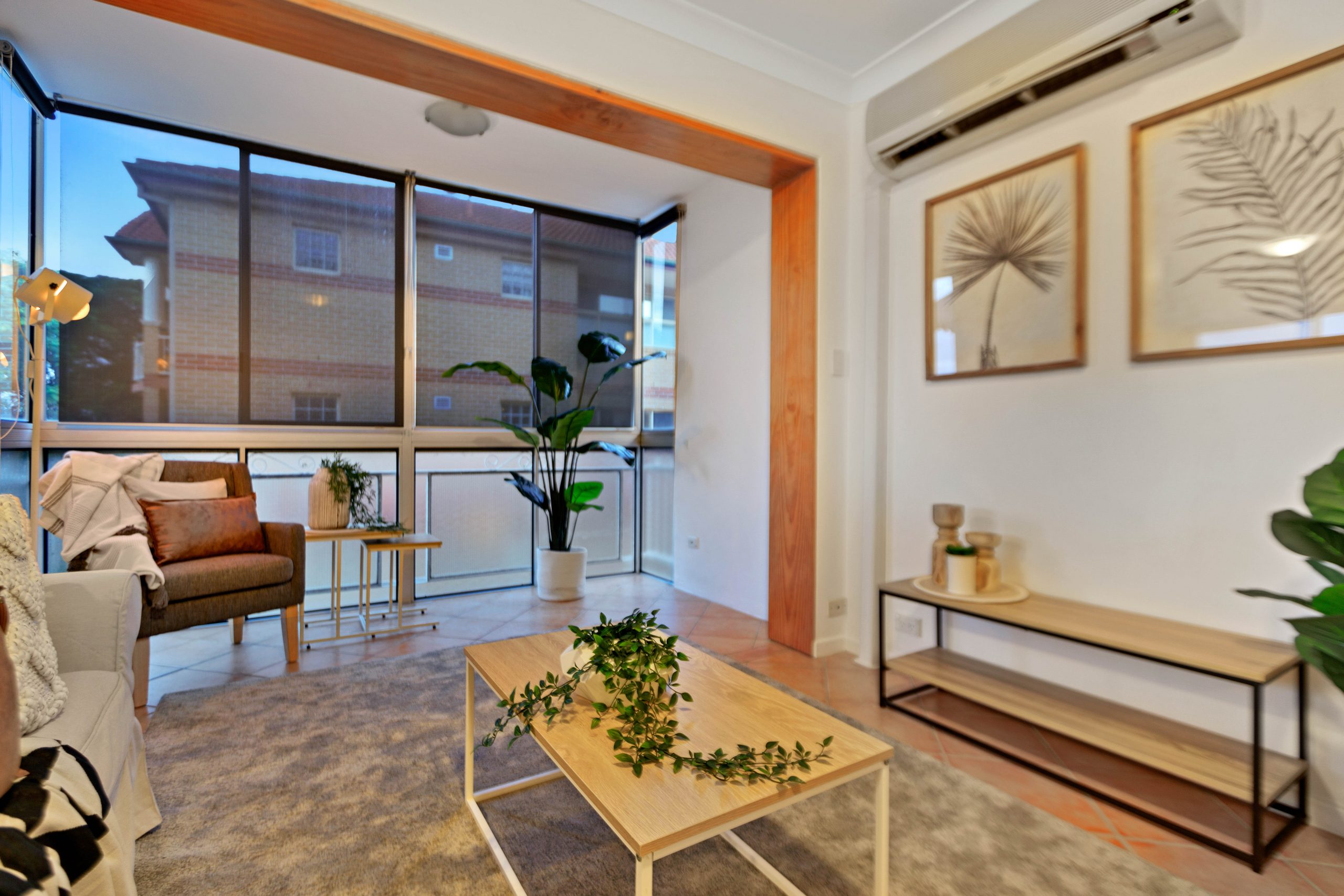 Big open plan living space with seamless flow, 2 large bedrooms (both with built-ins), roomy kitchen, an enclosed balcony which is the perfect position to capture the morning sun or to utilize as a study, tidy bathroom, city glimpses and air conditioning.