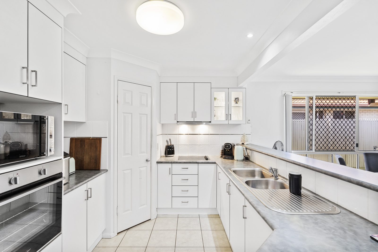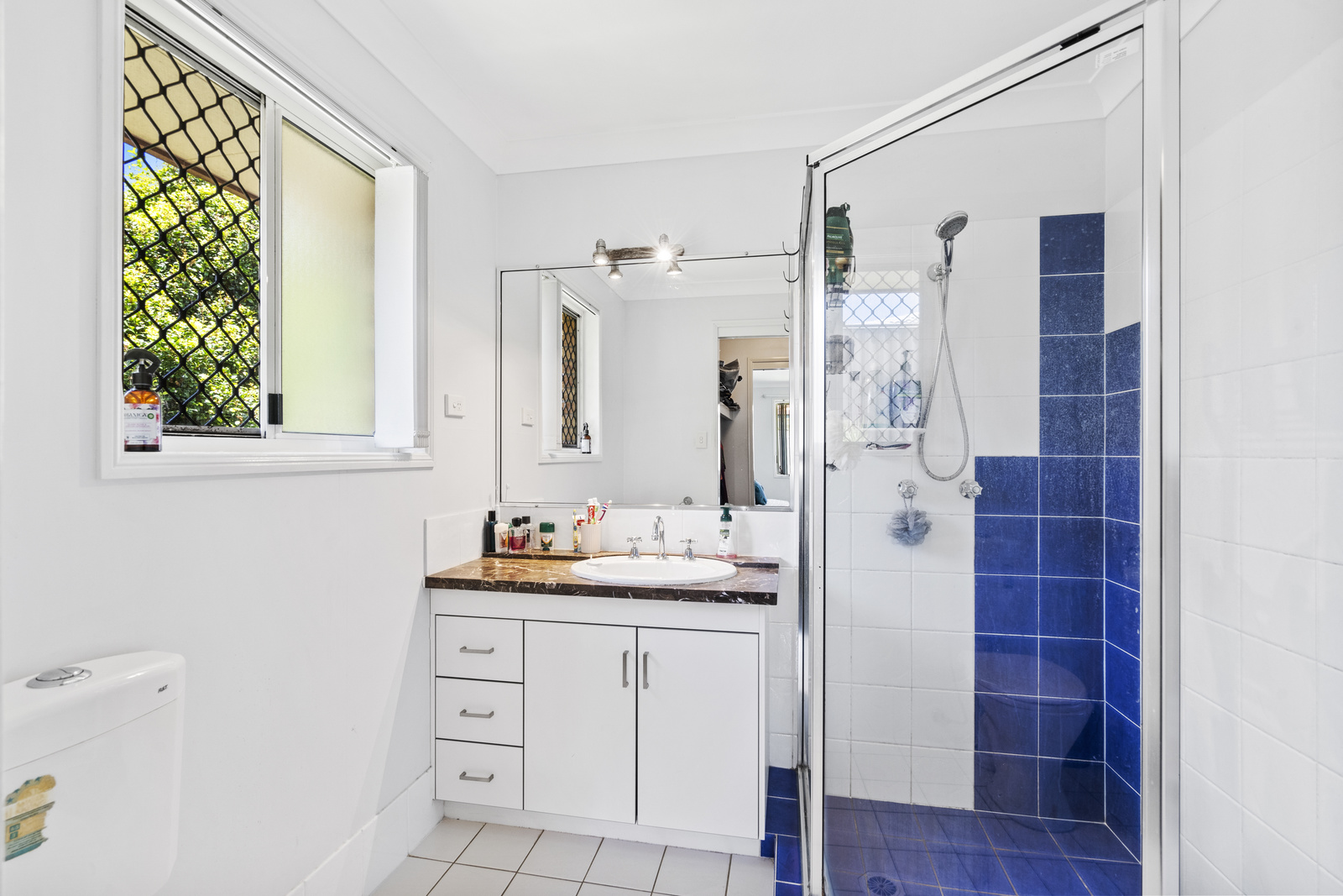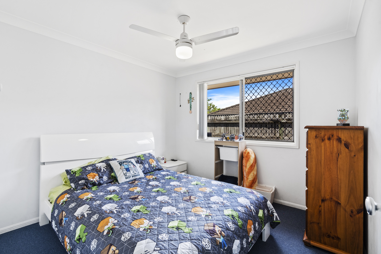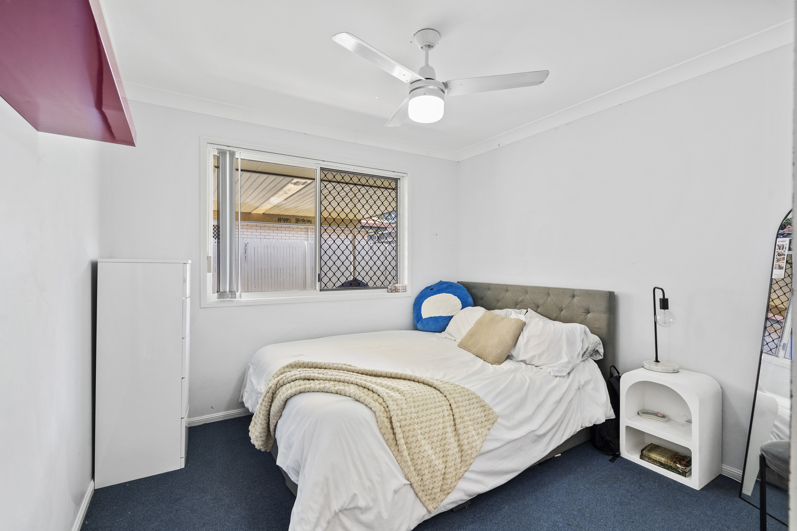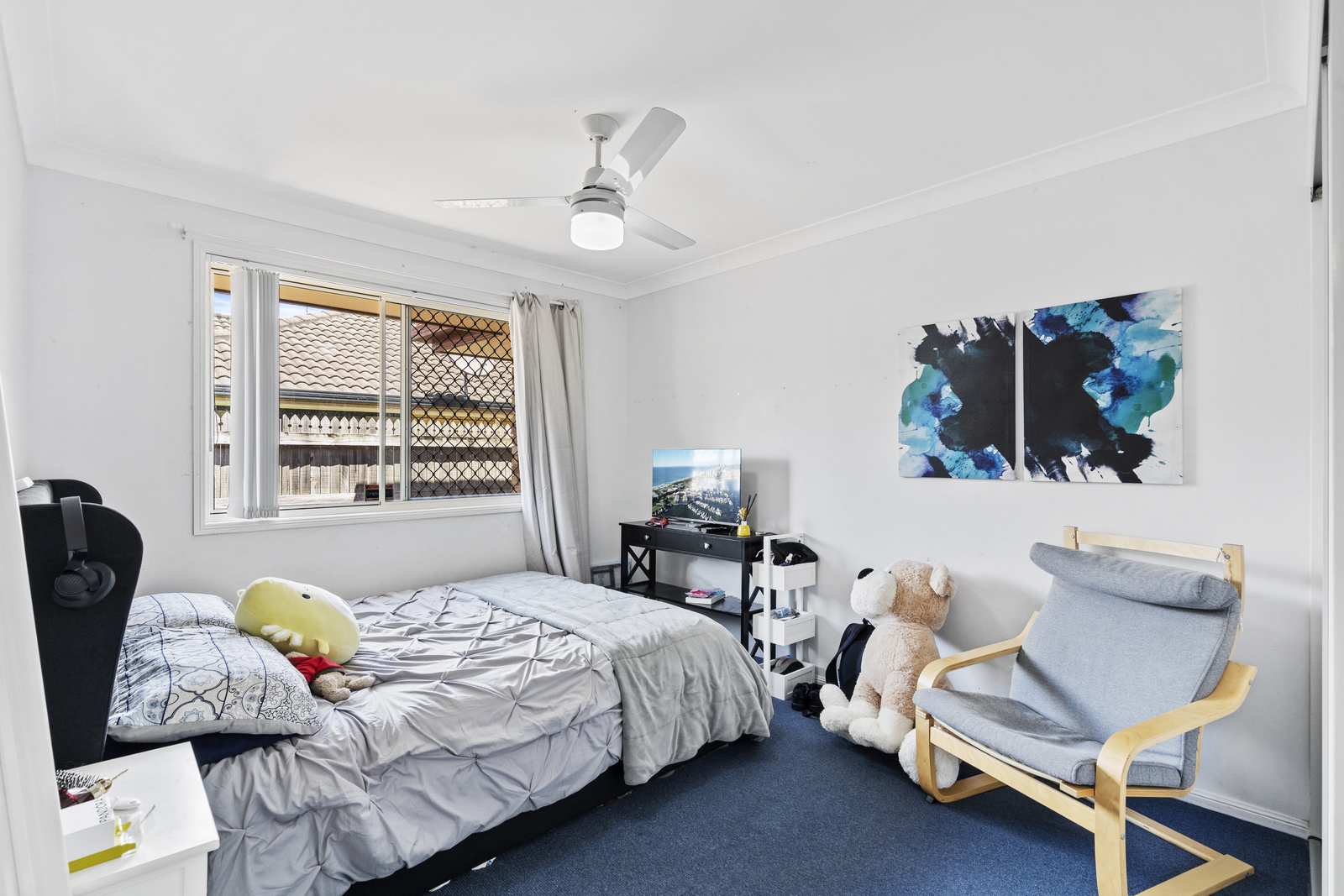 Security screens and fans throughout