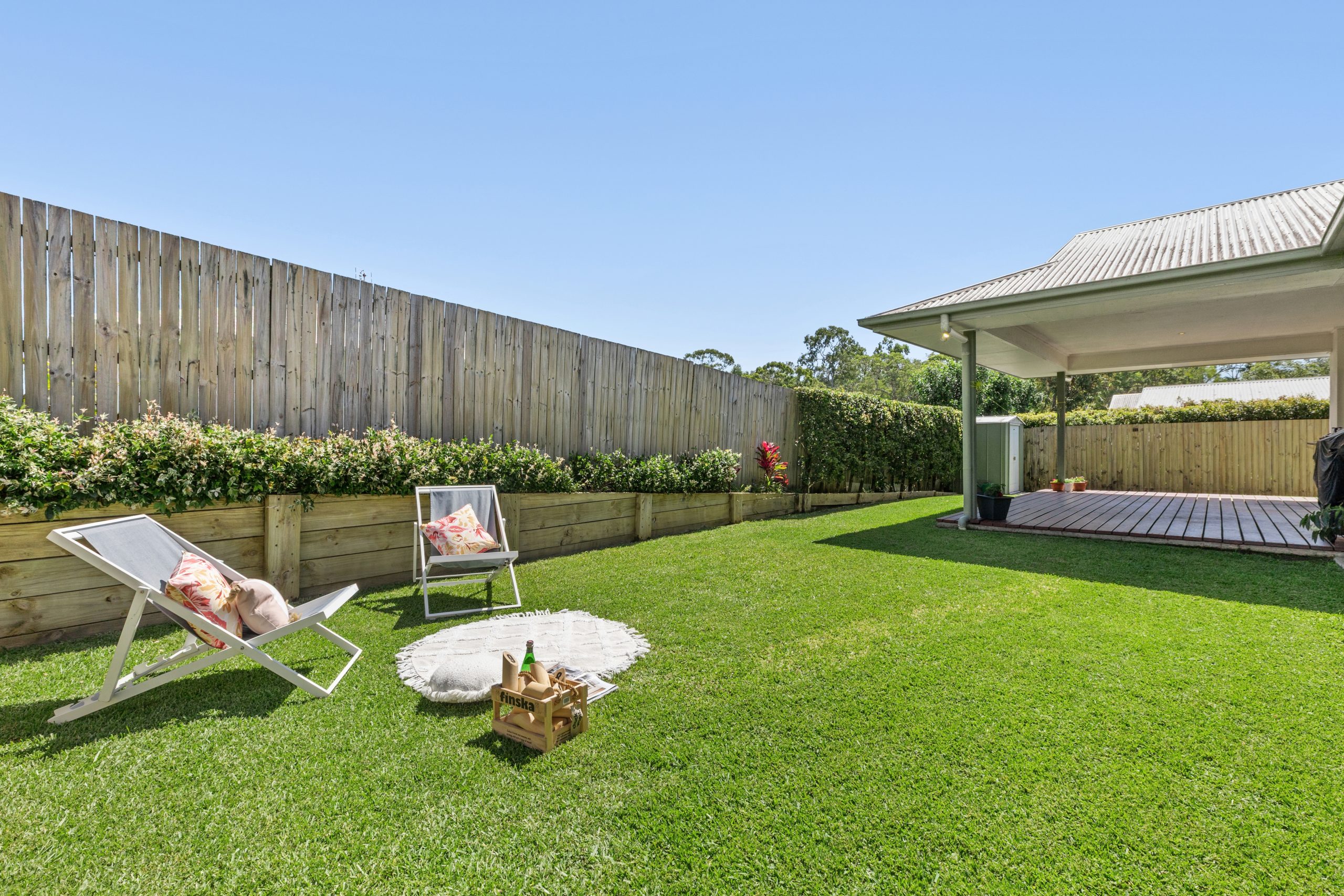 – Covered outdoor entertaining area with large, private backyard