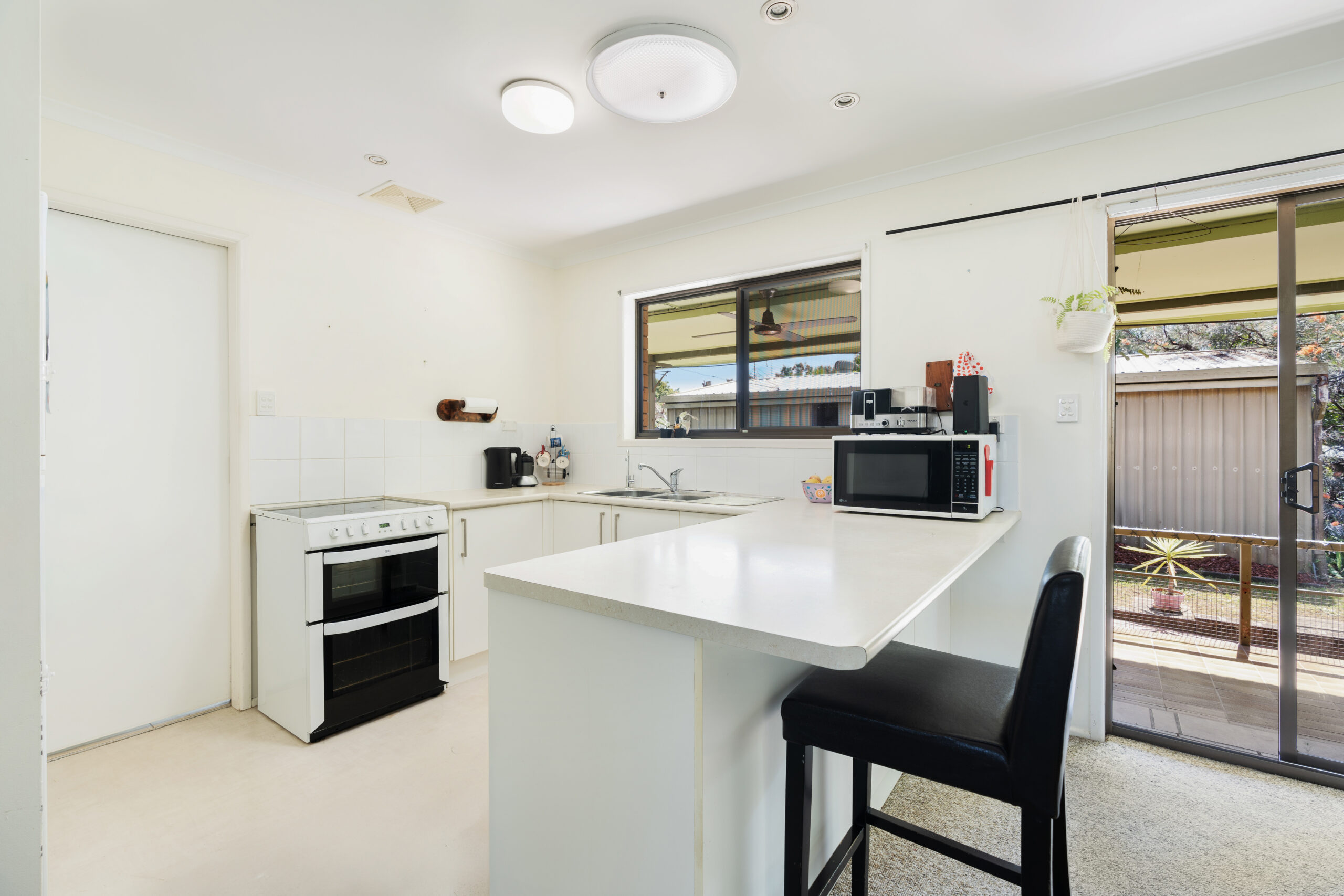 • Functional kitchen with white laminate breakfast bar