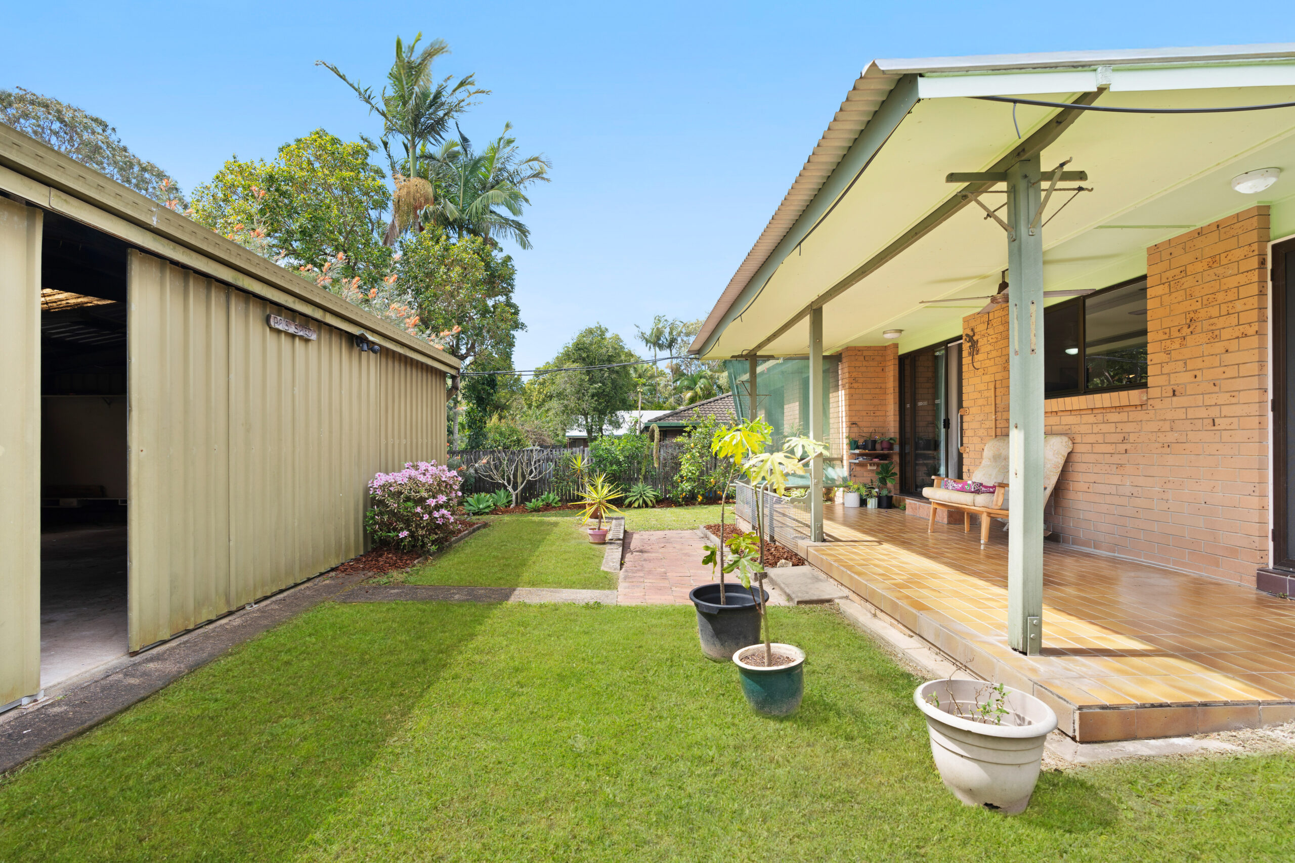 • Tiled, covered outdoor entertaining area with side access