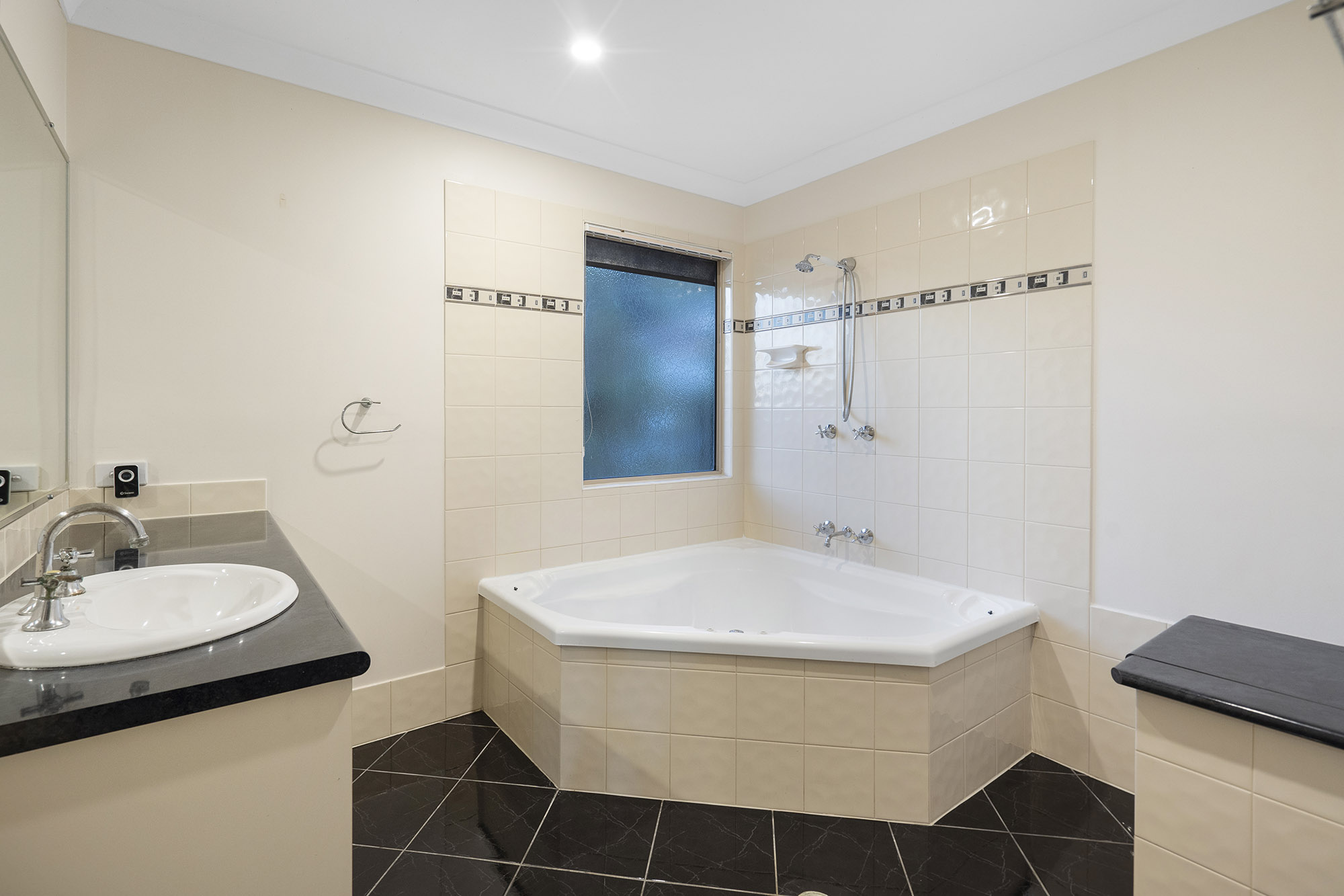 The master bedroom is a private sanctuary, featuring a very large and sunny bathroom with a spa bath for ultimate relaxation and indulgence. The master bedroom has a very spacious layout, huge walk-in robe and direct access to the balcony with uninterrupted views to the mountain range, this master retreat is the perfect haven to unwind after a long day.