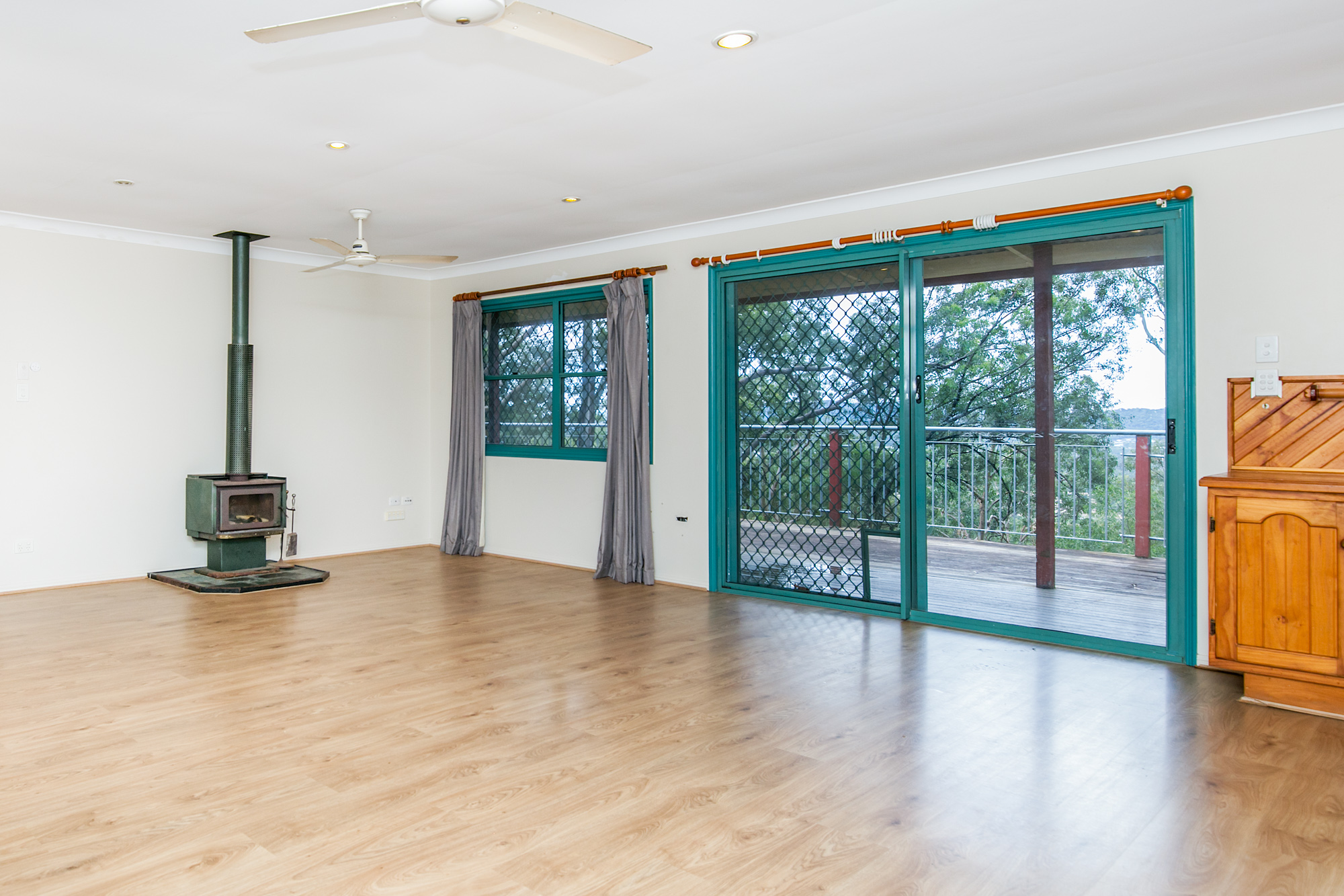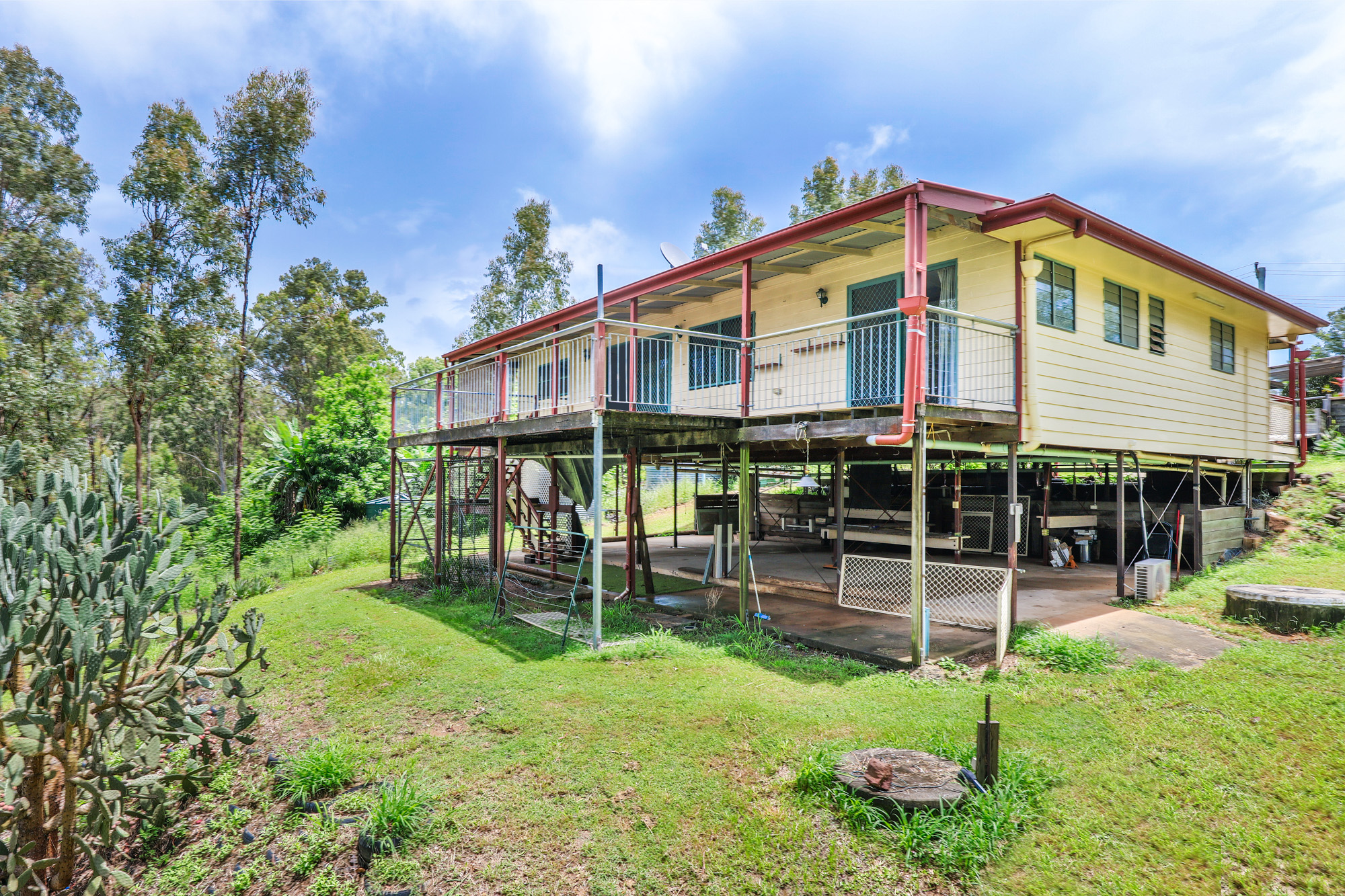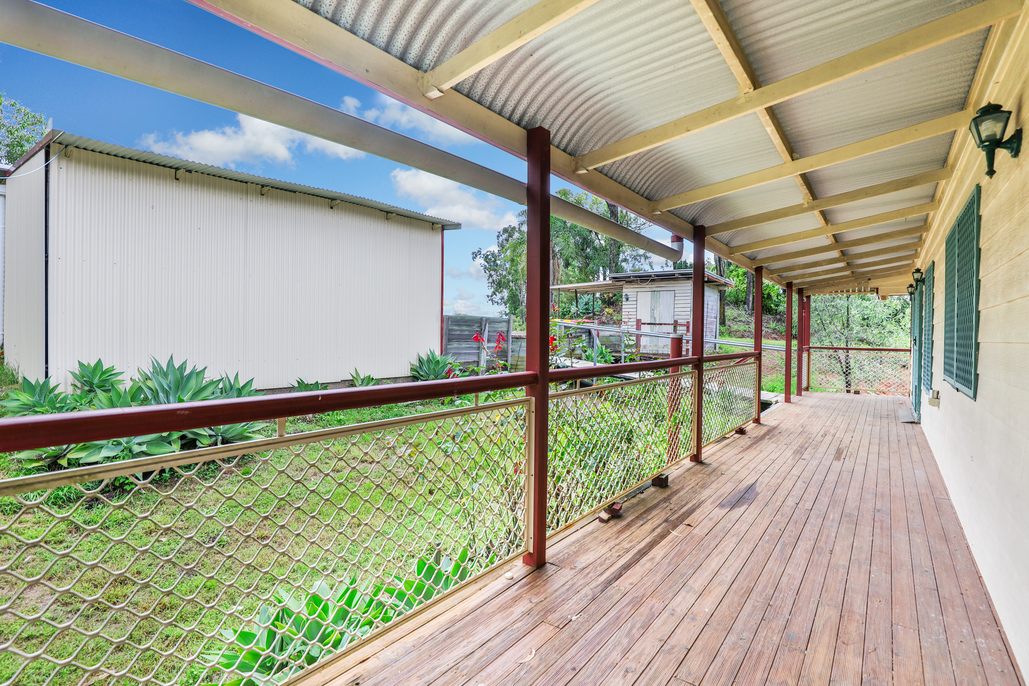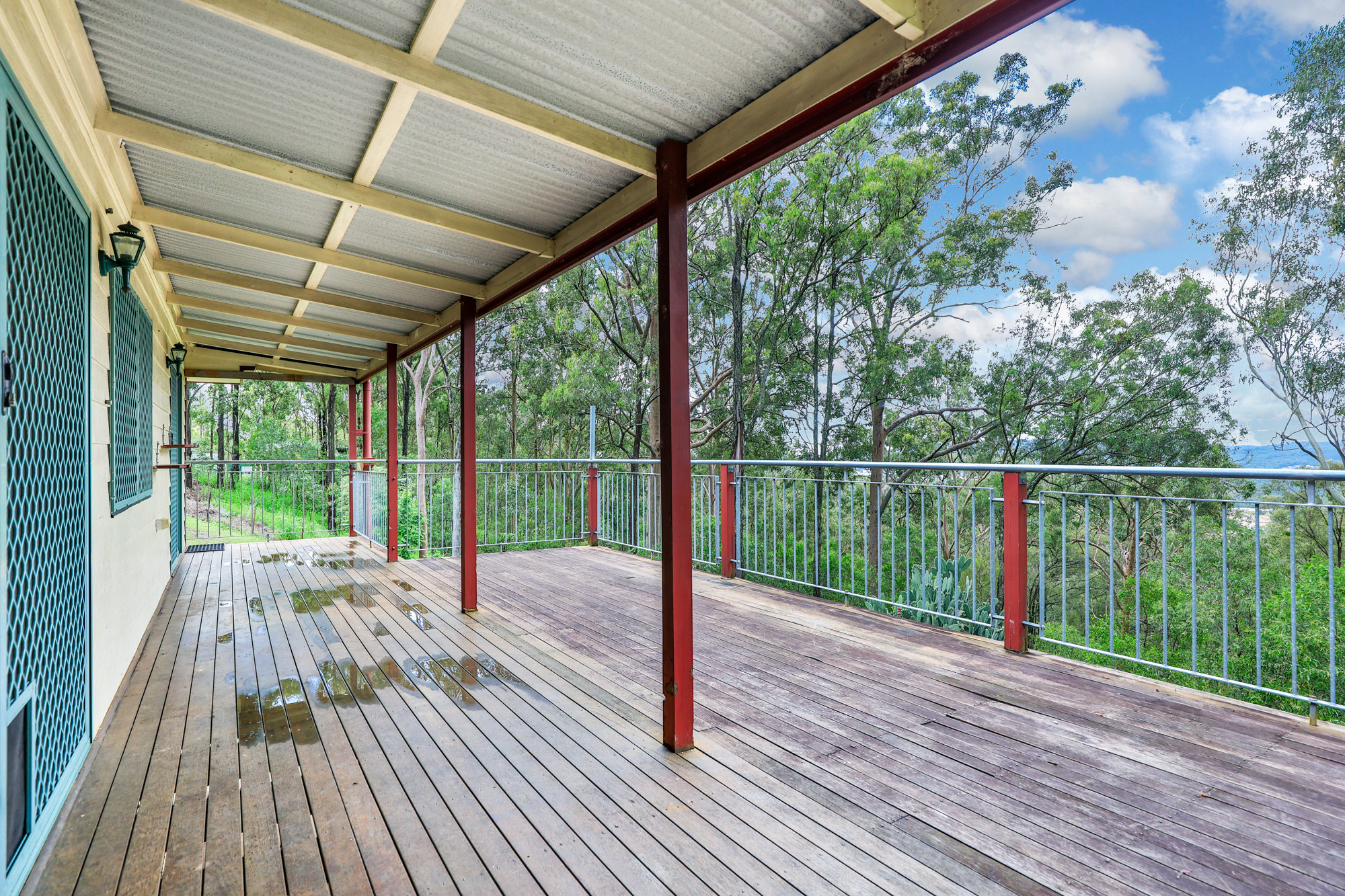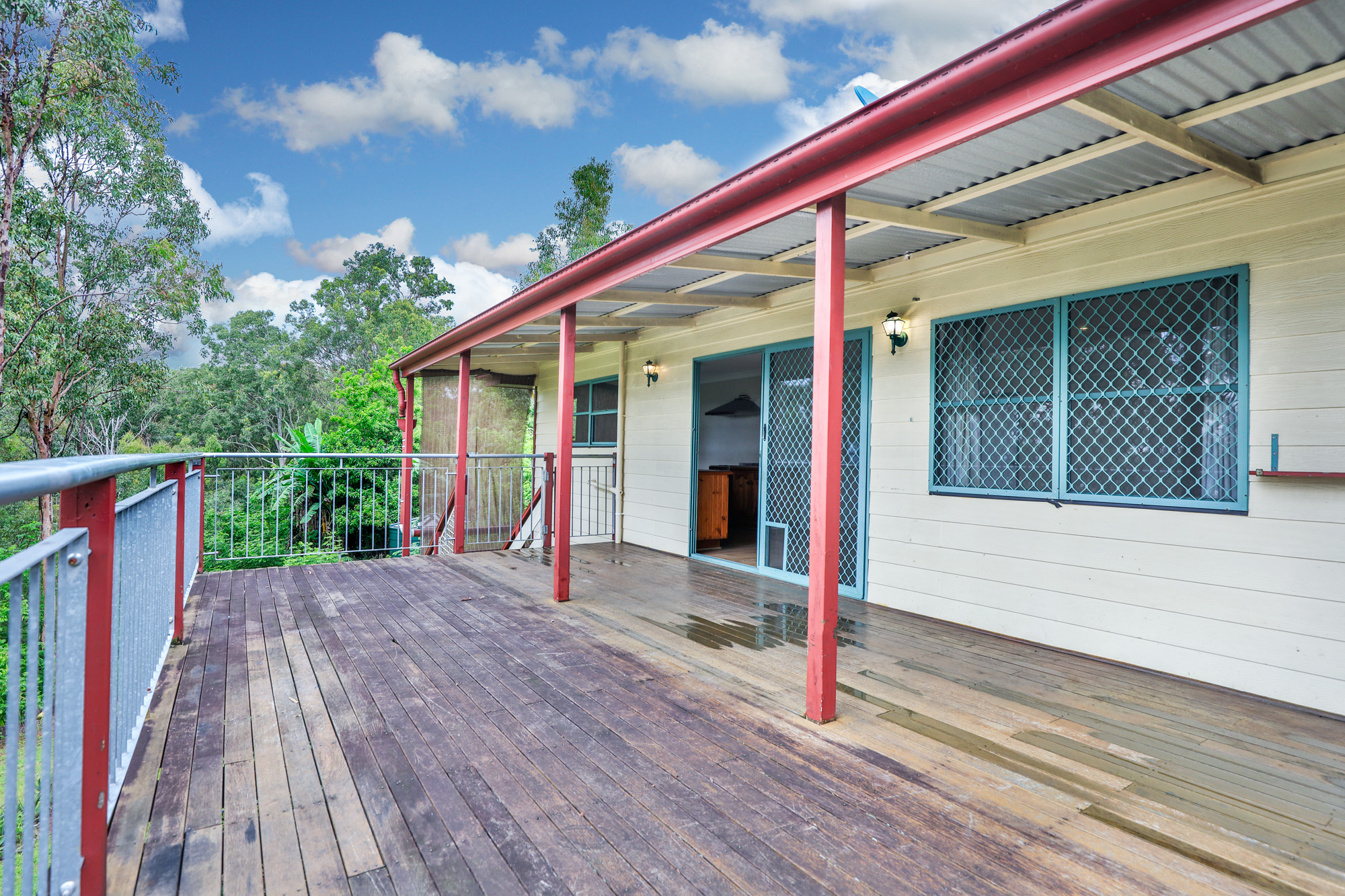 – Expansive timber deck with stairs leading to a concreted area beneath the house