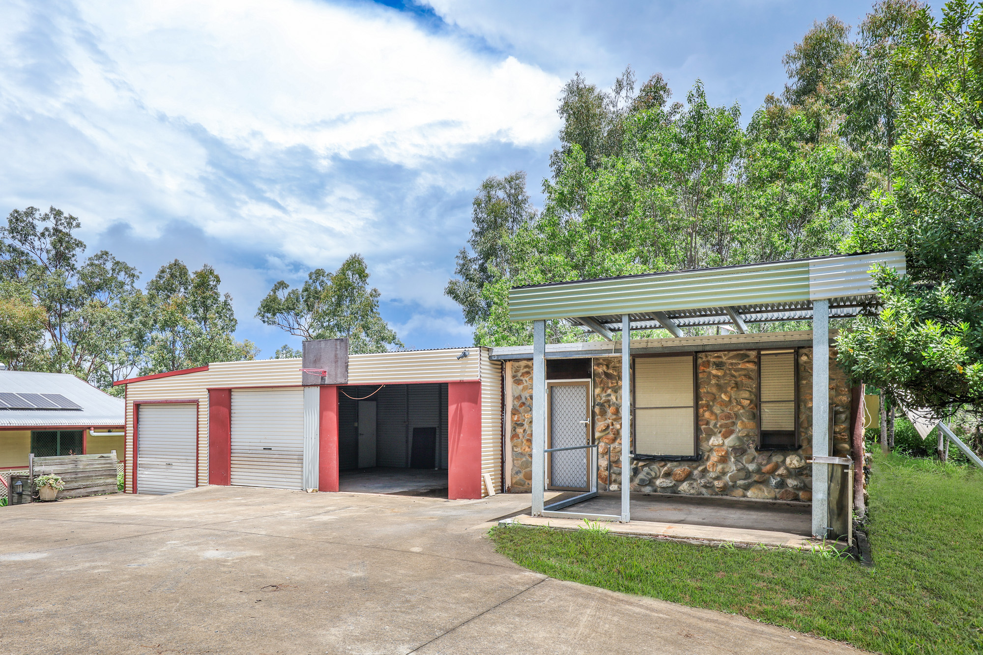 – 3-bay shed with single phase power plus extra room, ideal for an office or workshop