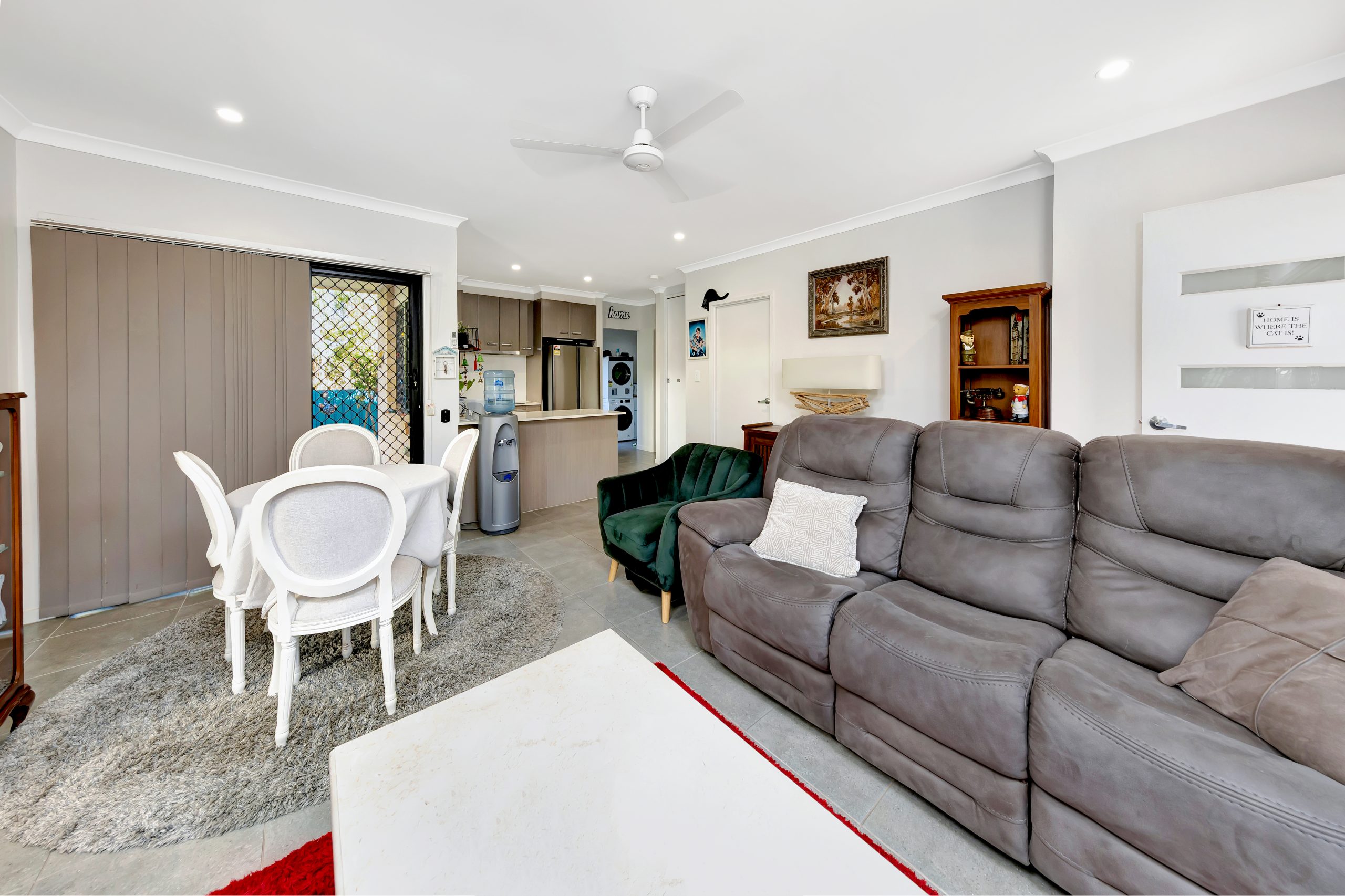 Upon entry, you’re greeted by a light-filled open plan living and dining area, seamlessly flowing into a stylish kitchen complete with stone benchtops, quality appliances, and a generous walk-in pantry-perfect for everyday living and entertaining alike.
