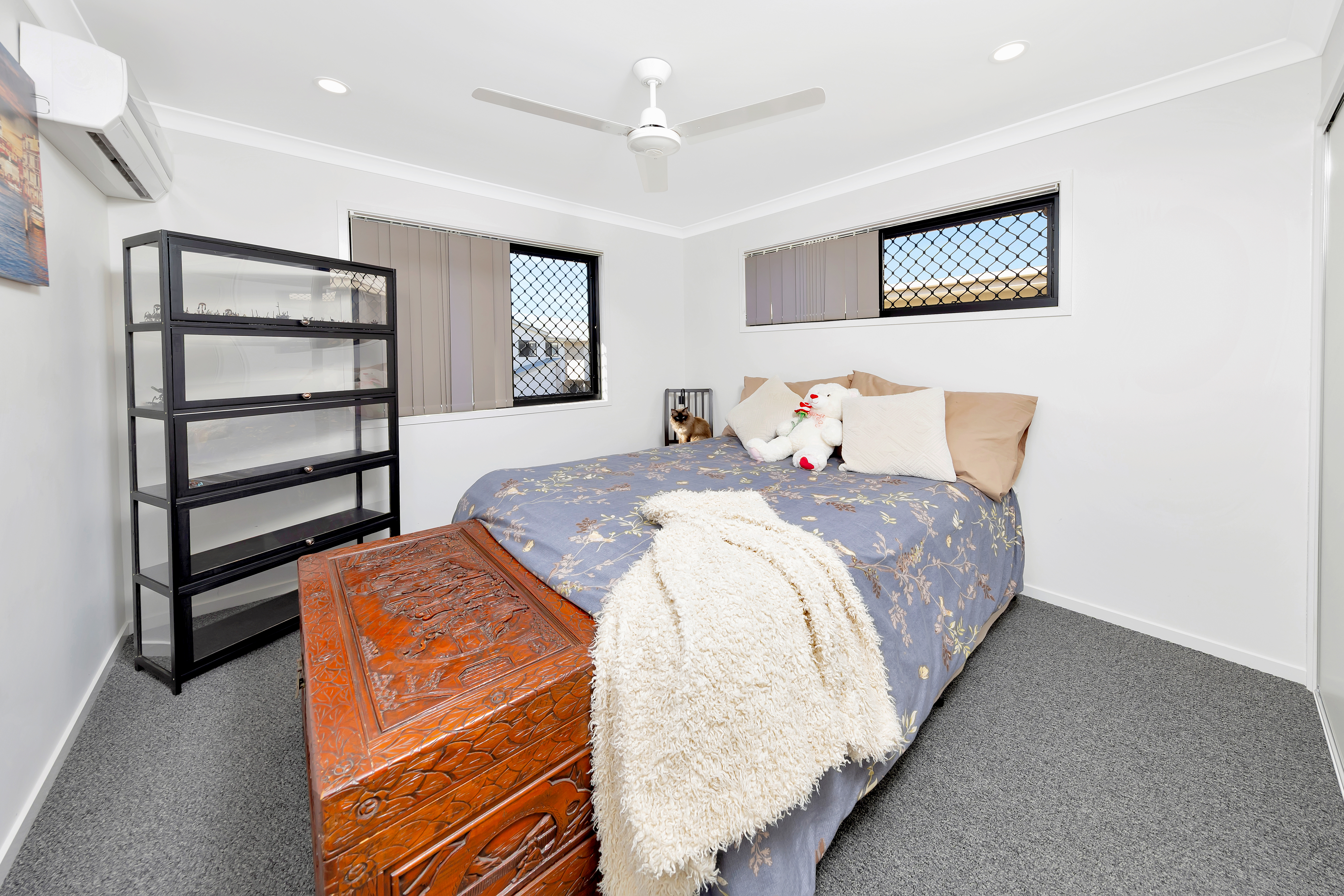 As you head upstairs via the extra-wide staircase, you’ll discover three spacious double bedrooms. The master suite is a true retreat, featuring its own private ensuite and walk-in wardrobe. All bedrooms are fitted with ceiling fans and air conditioning to ensure year-round comfort. A large linen press upstairs adds even more practical storage.