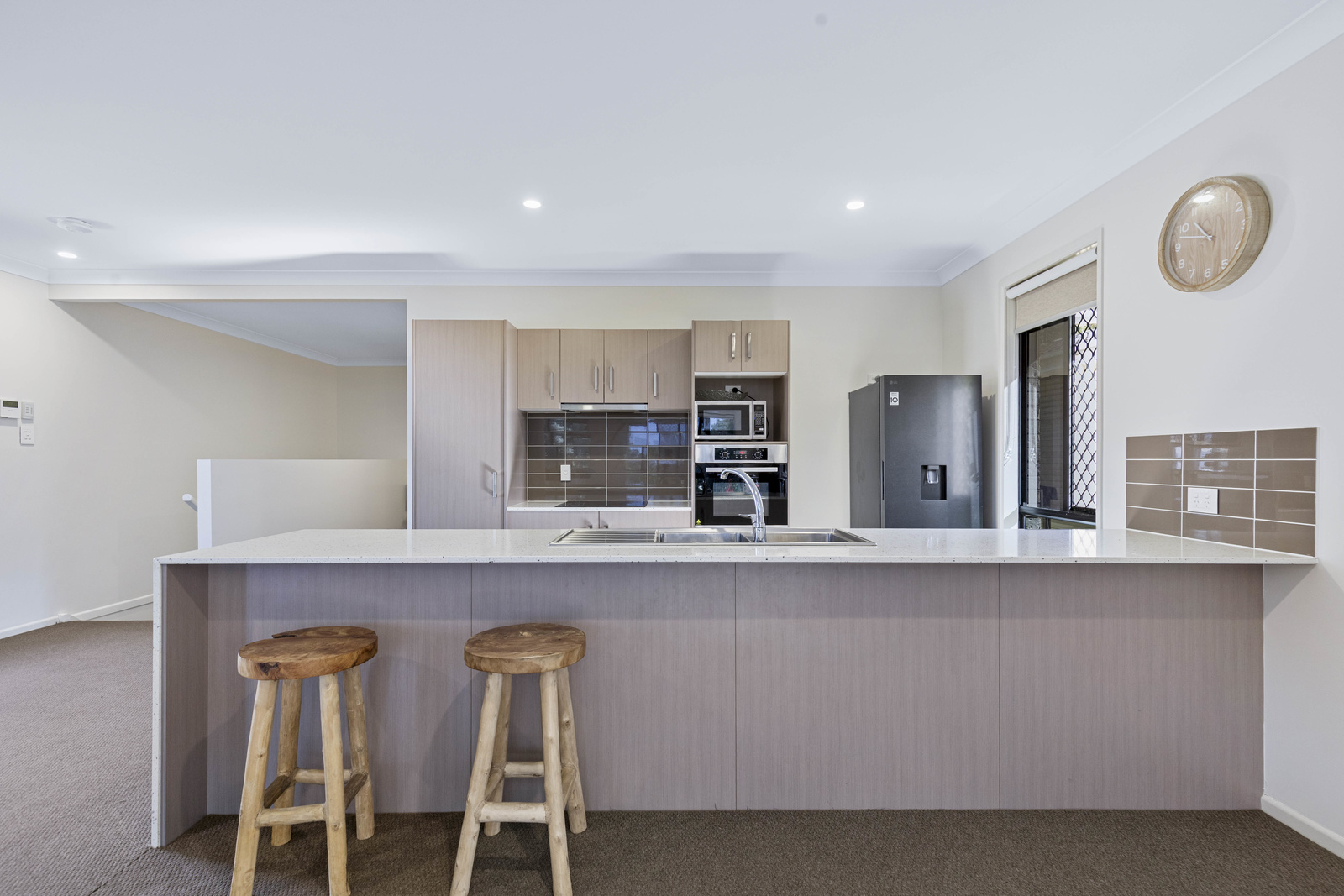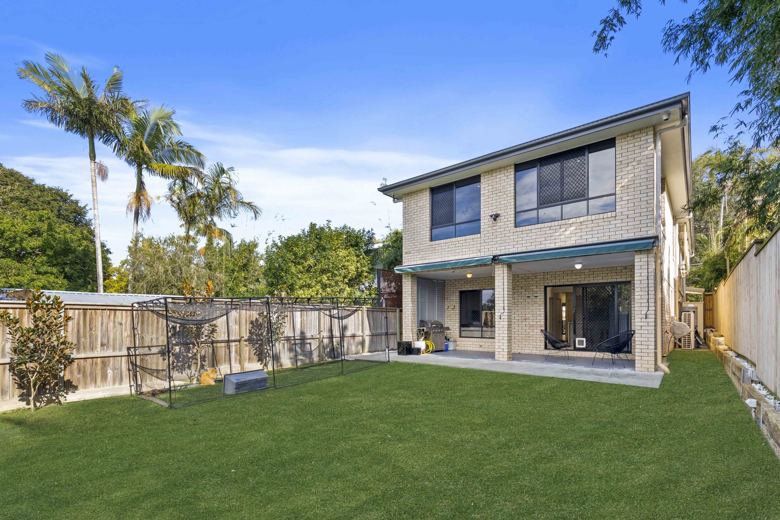 Downstairs is a completely self-contained level, featuring two bedrooms, a third bathroom, full kitchen, and its own open-plan lounge and dining area. The seamless flow between indoor and outdoor living is certainly evident, with sliding doors providing access to the outdoor entertaining space overlooking the backyard with plenty of grass space for the kids and pets. With its own entry and internal access to the garage, this level offers complete independence – perfect for extended family or guests.