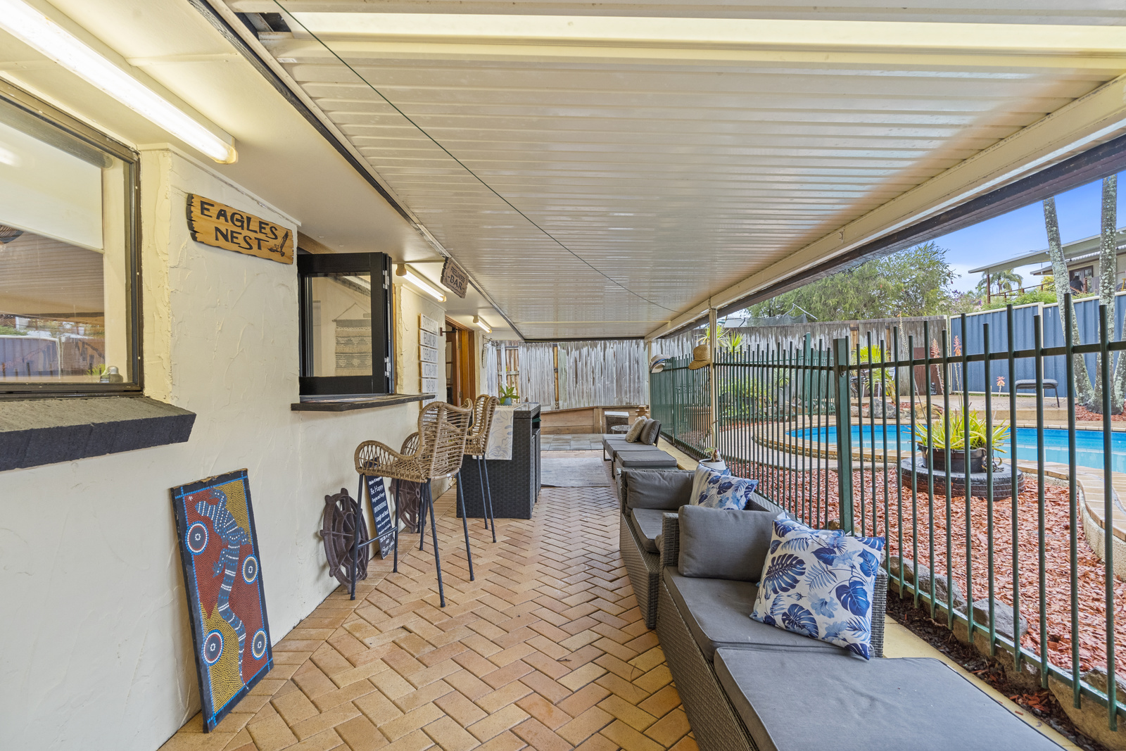 • Full-length covered outdoor entertaining area