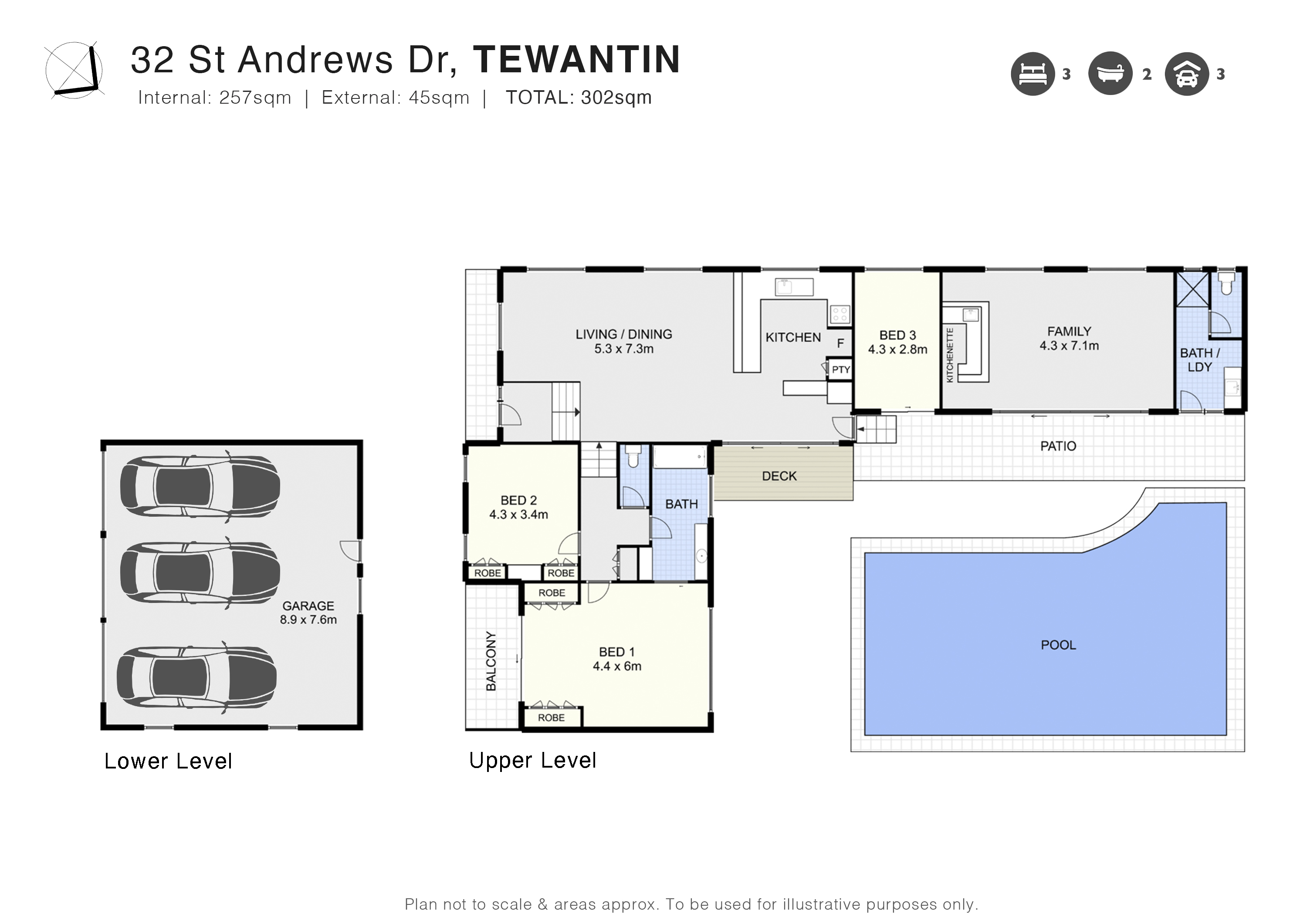 3 car lock up accommodation