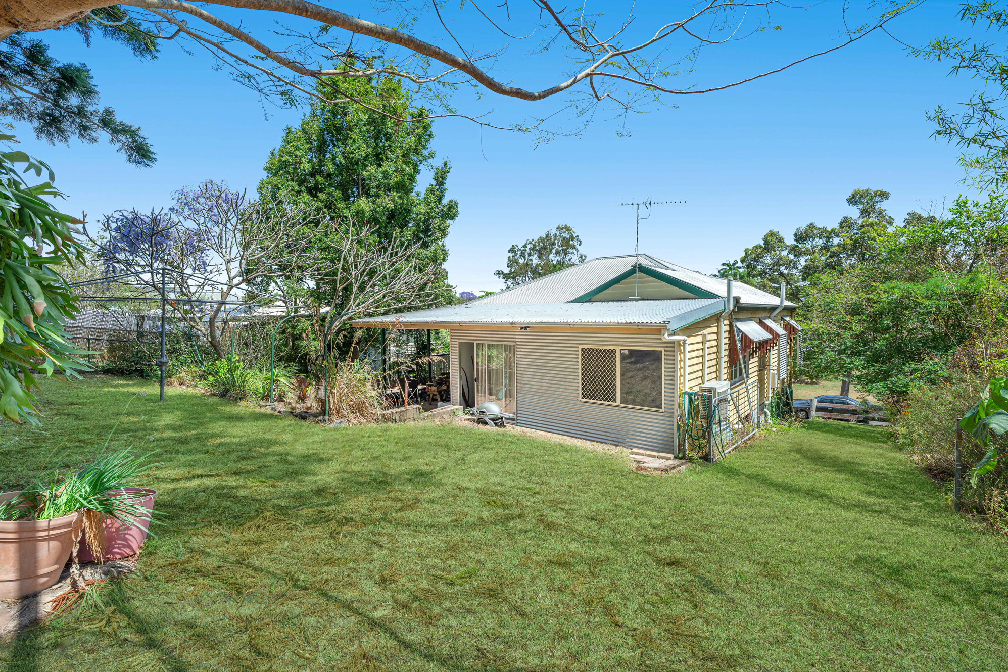 • Two-bedroom, two bathroom post-war home with a wrap-around verandah and air-conditioned living area
