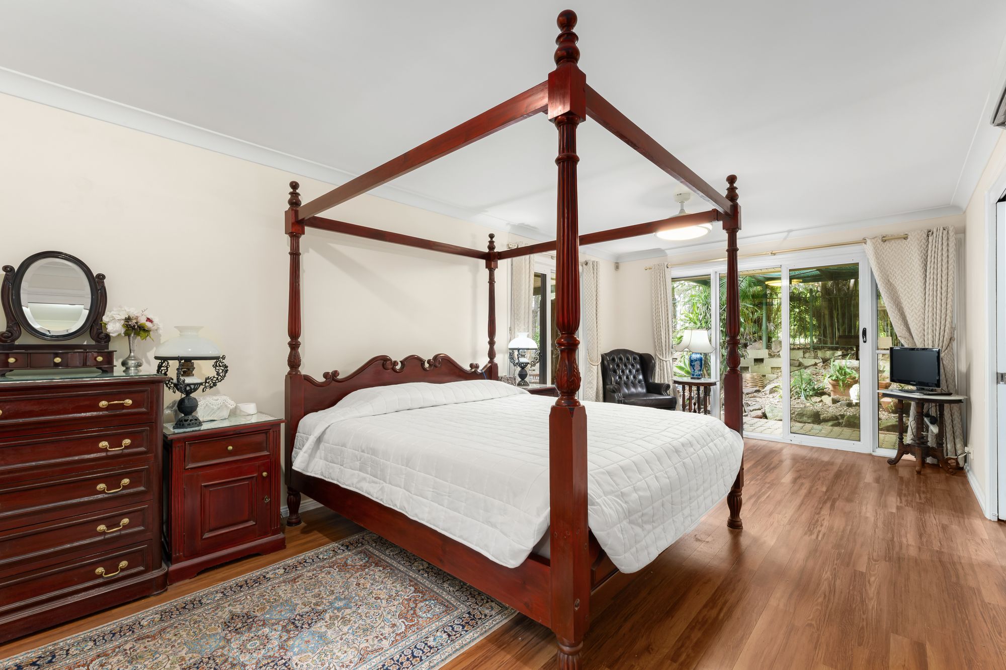– Large master suite with air conditioning, ceiling fan, oversized walk-in robe and direct alfresco access