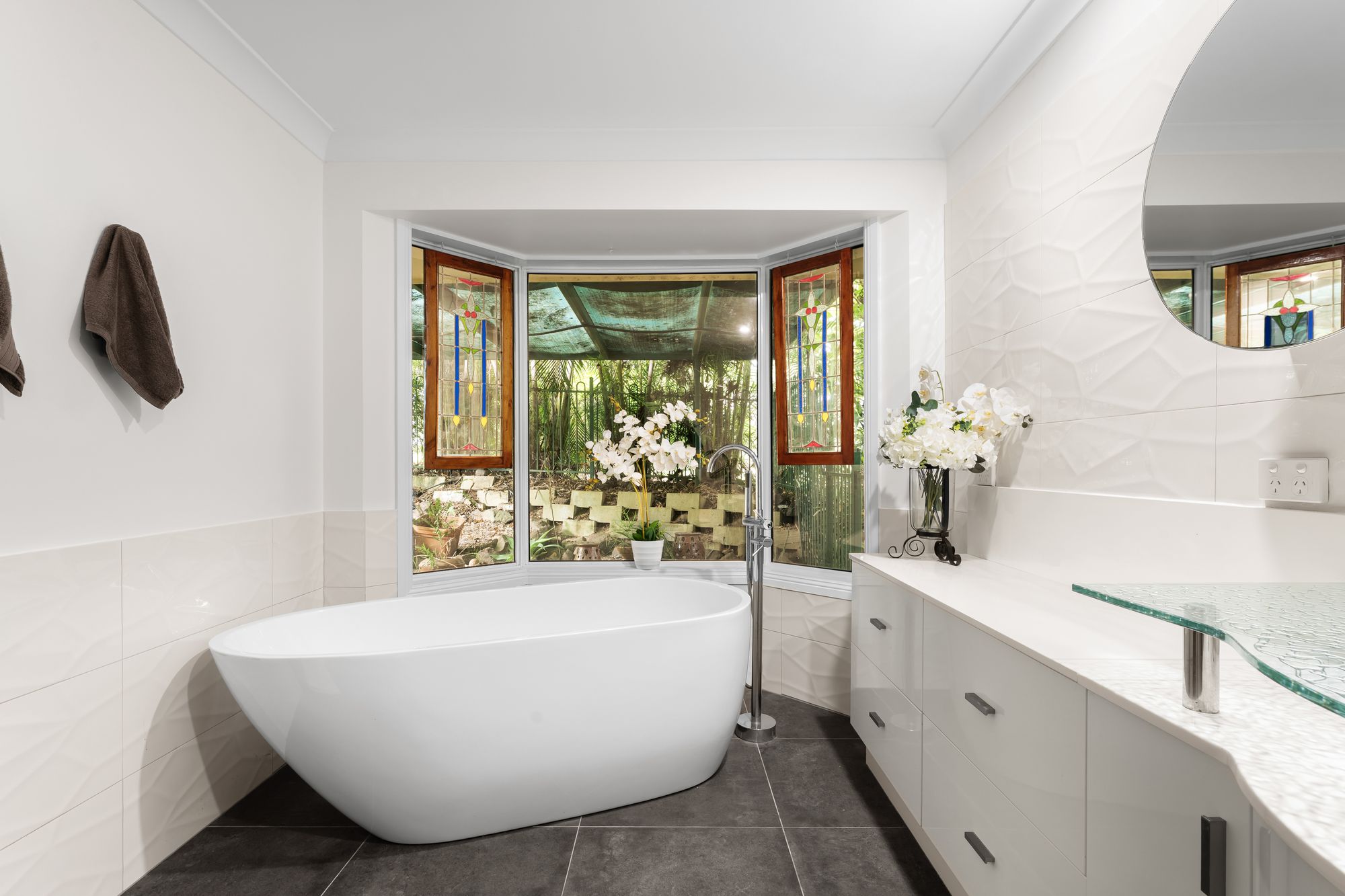– Luxurious ensuite with freestanding bathtub, huge vanity and dual shower heads