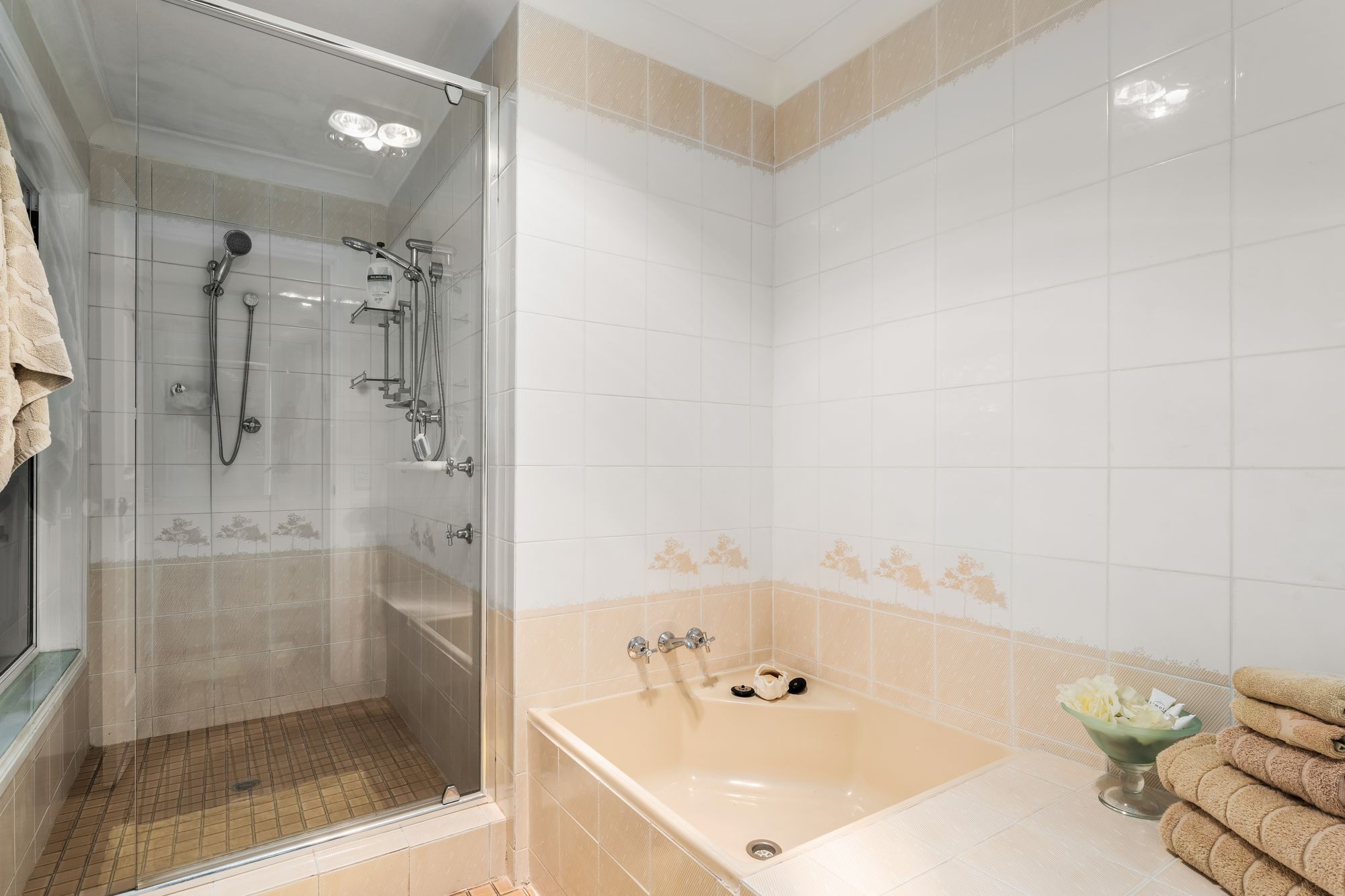– Spacious main bathroom with large shower, dual shower heads, children’s bathtub, separate vanity and WC