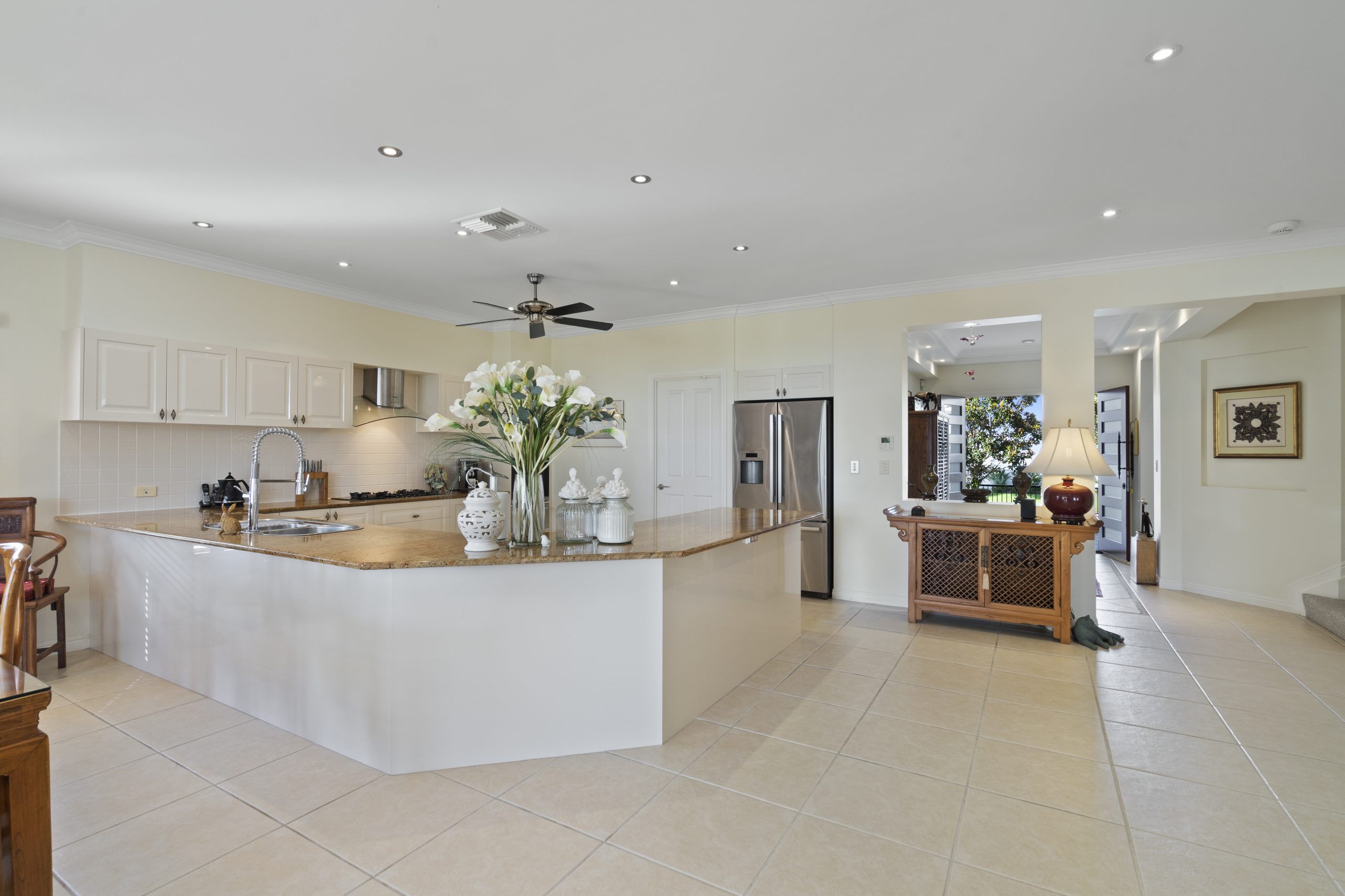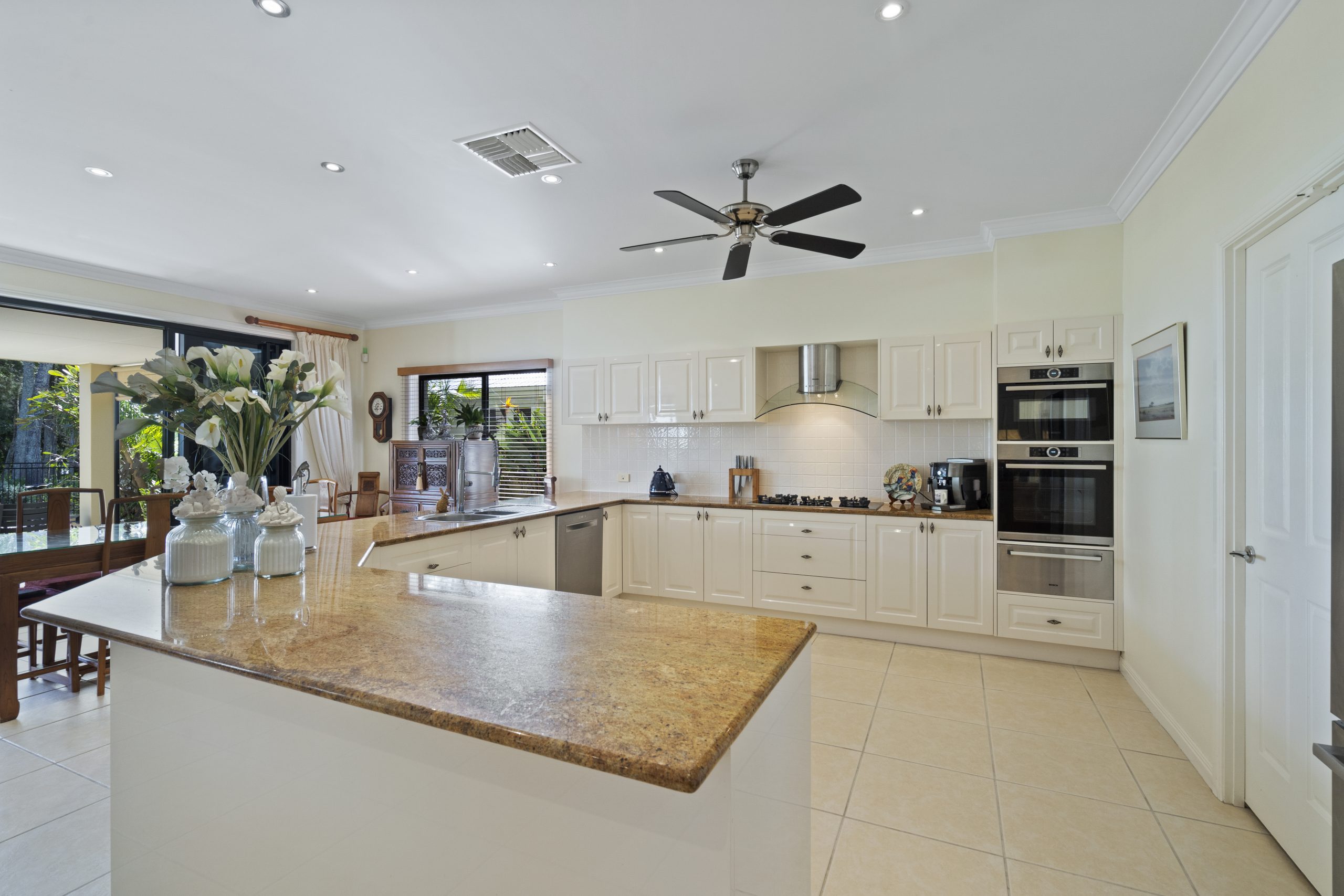 • Large open-plan ‘chef’s’ kitchen with granite benchtops and European appliances, complemented by a casual eating area