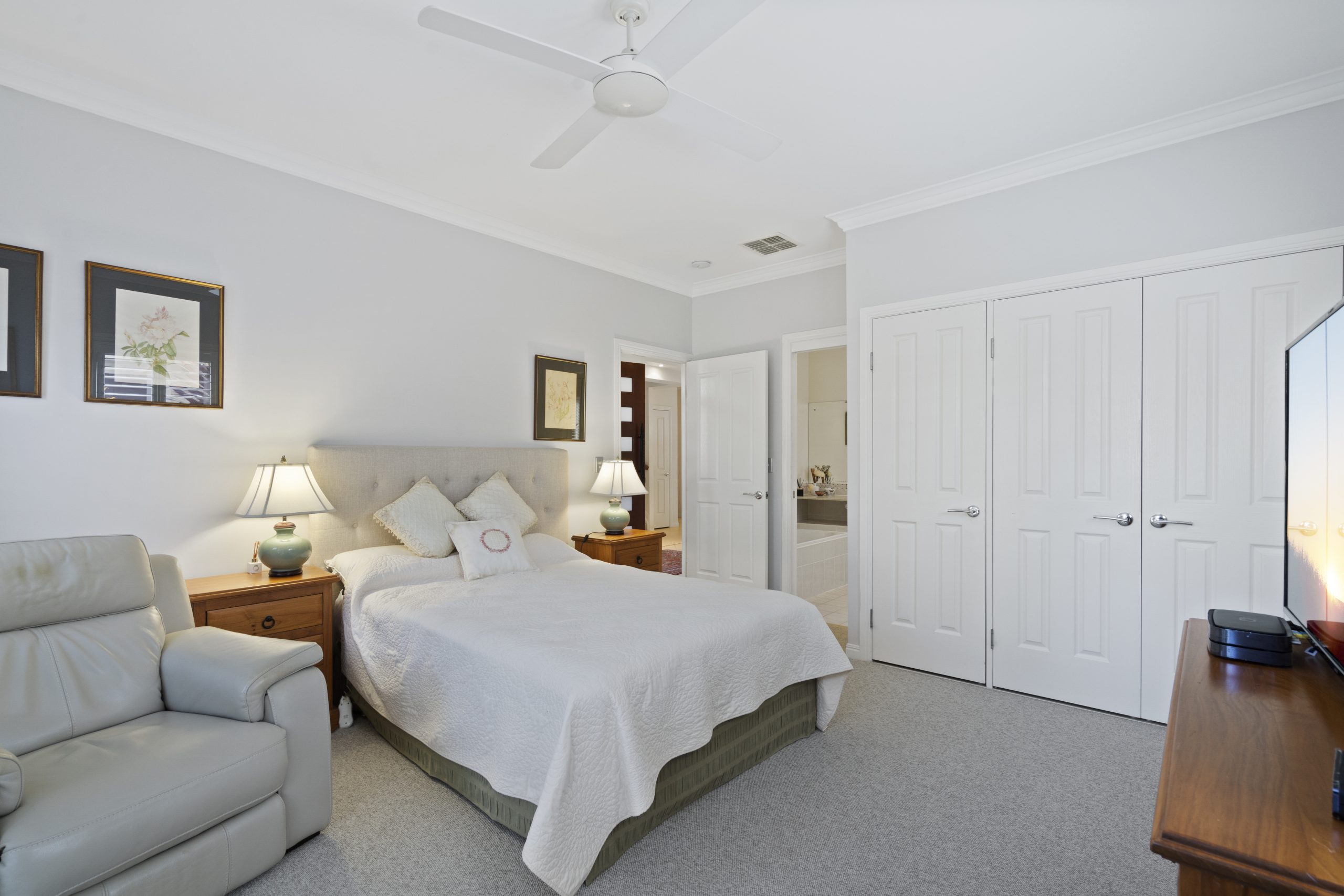• Luxurious master bedroom retreat featuring an ensuite, His and Hers walk-in robes, and unparalleled panoramic views over Waterloo Bay to Fisherman Island and the entrance to the Brisbane River