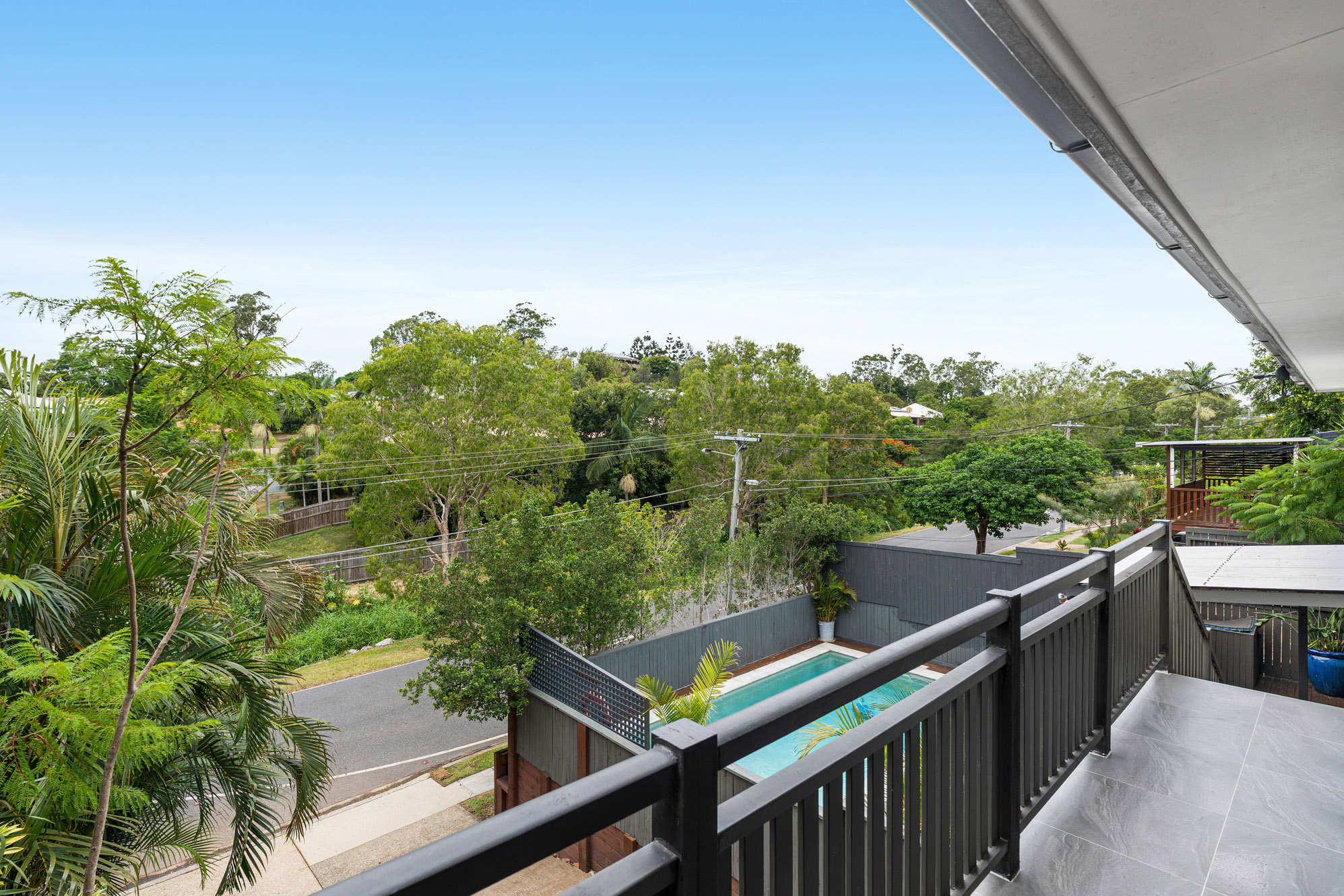 Discreet poolside retreat positioned at the front of the home for a refreshing dip with the kids