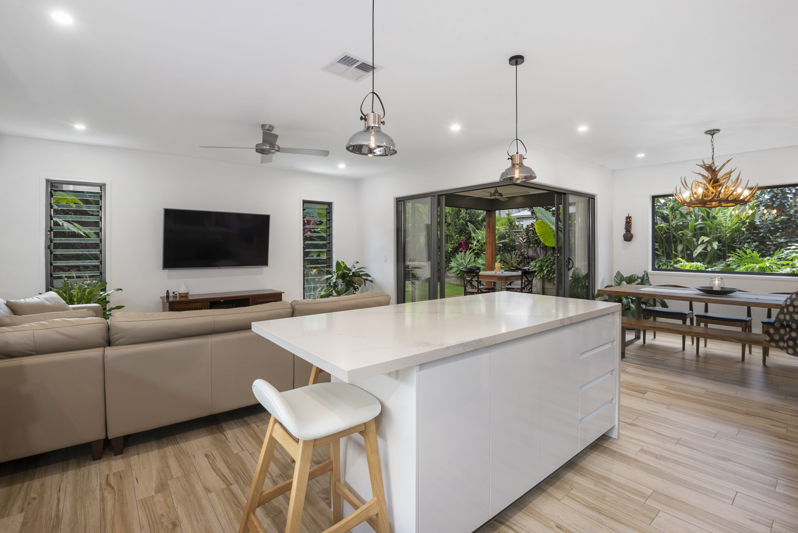 Every detail has been considered: ducted air conditioning, solar power, gas hot water, full fibre optics, security lighting, extra parking for trailer/boat, abundant storage, UV-rated retractable shade screen and fire-rated flyscreens.