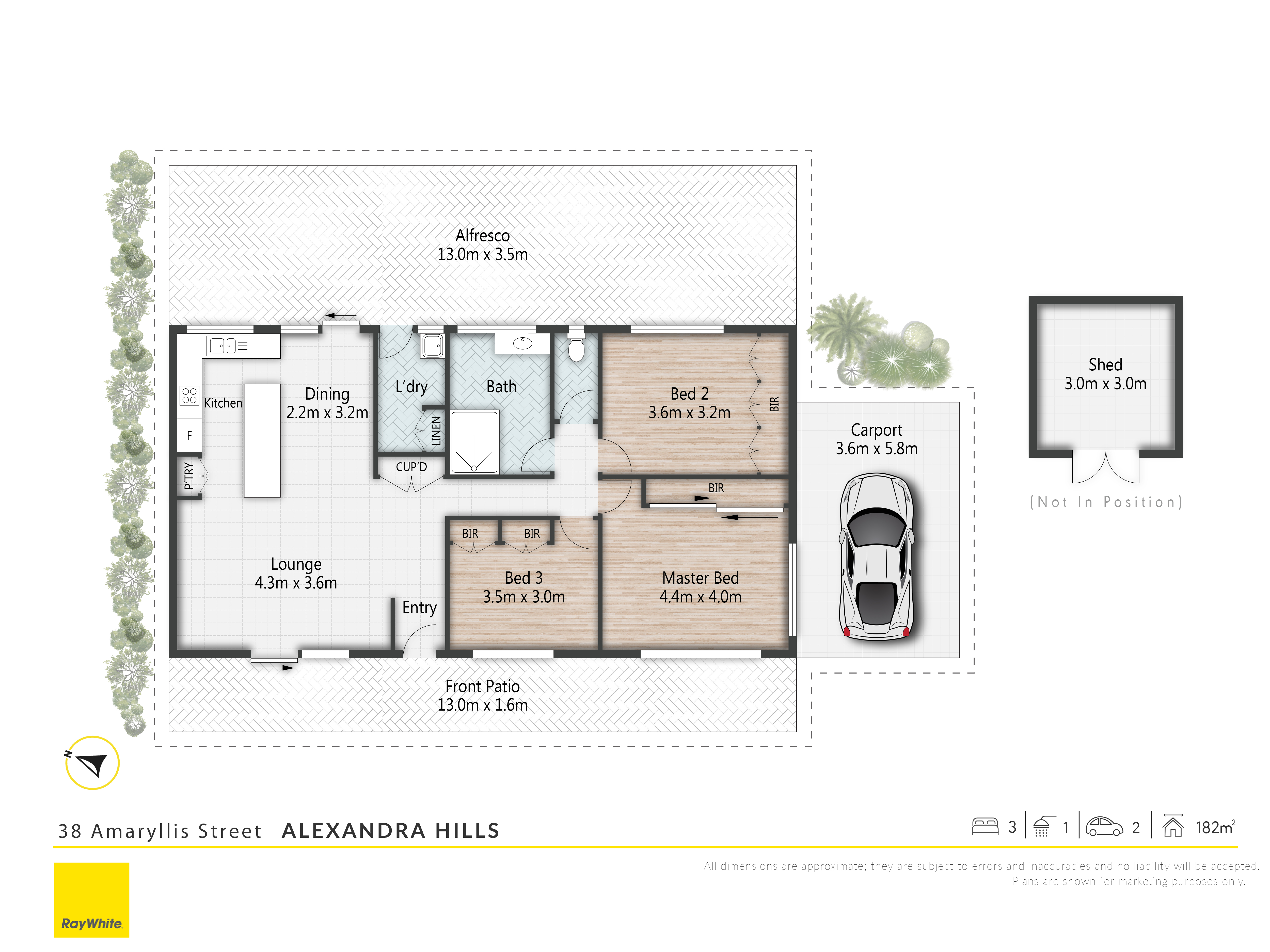 The property offers generous open plan living with air-conditioning, three large bedrooms, newly renovated bathroom, modernized kitchen with dishwasher, covered car accommodation plus full length covered patio.