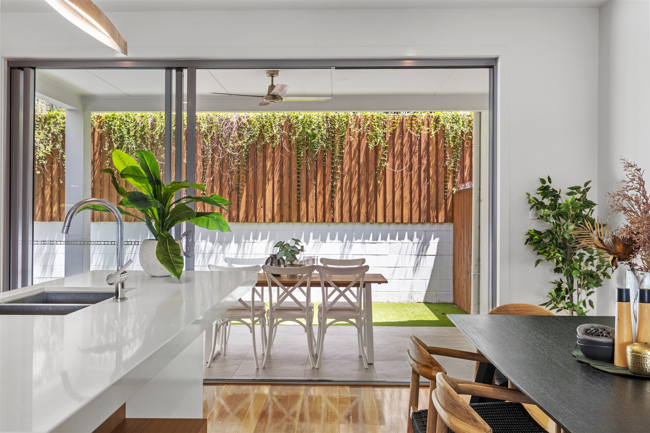 – Stunning open plan living, dining and kitchen areas with seamless transition through to the front balcony and wonderful courtyard/ Alfresco dining, ideal for rest or play