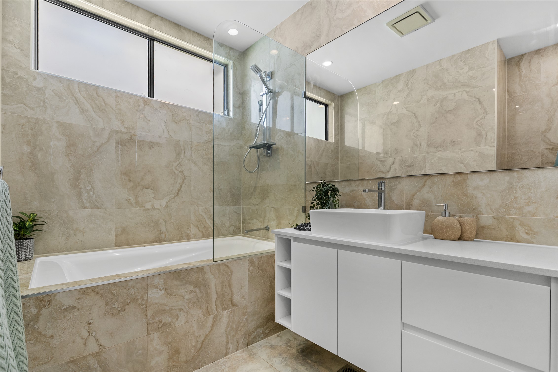 – Stylish main bathroom with combined shower/bath