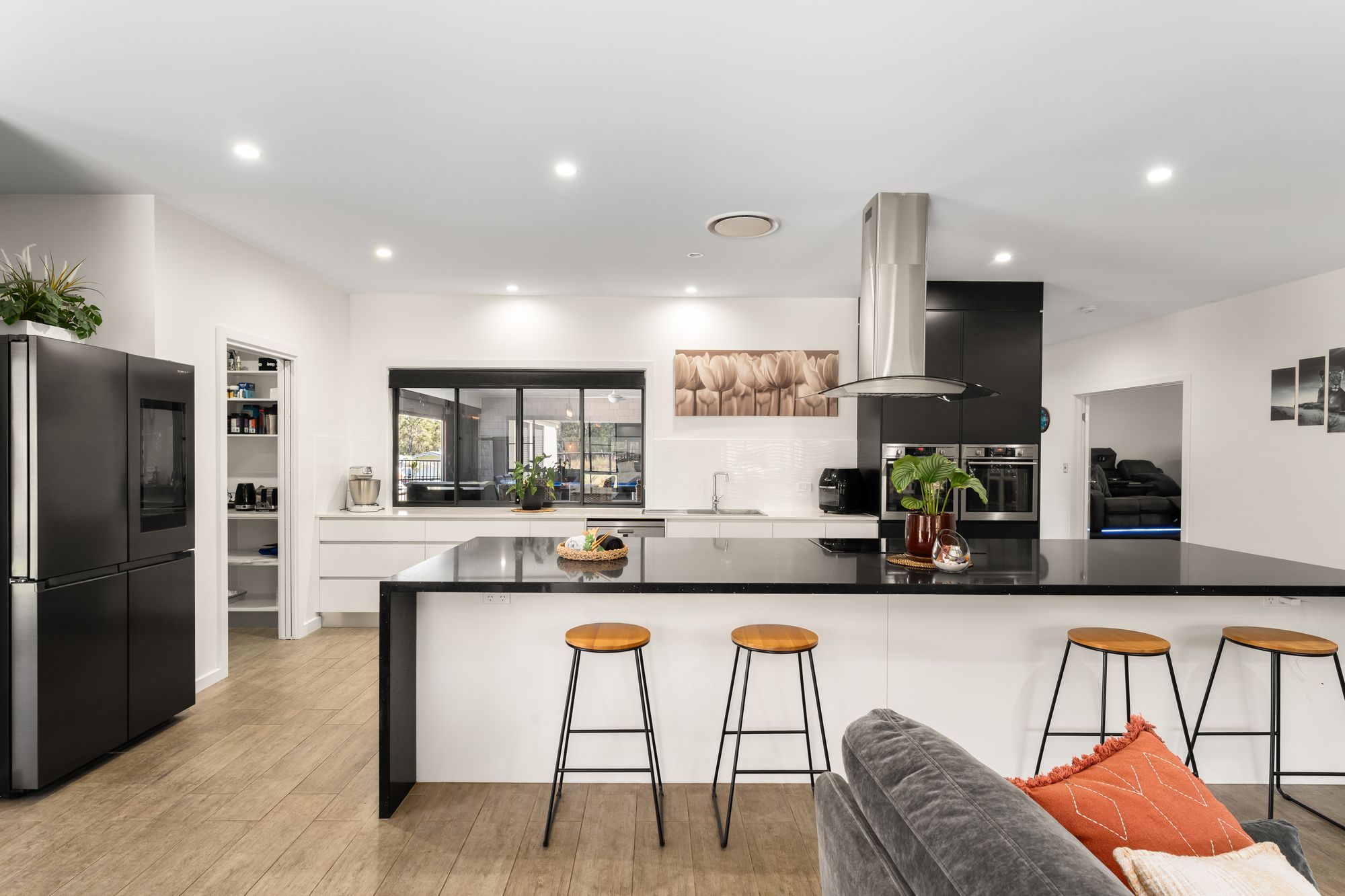 • Impressive chef’s kitchen with large stone island bench and breakfast bar