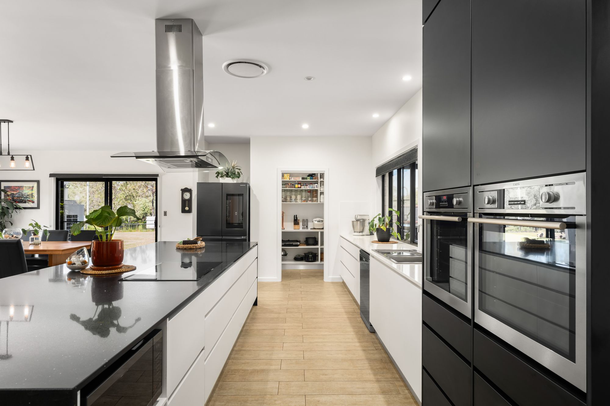 • Dual 600mm AEG ovens, Ariston induction cooktop and Miele dishwasher