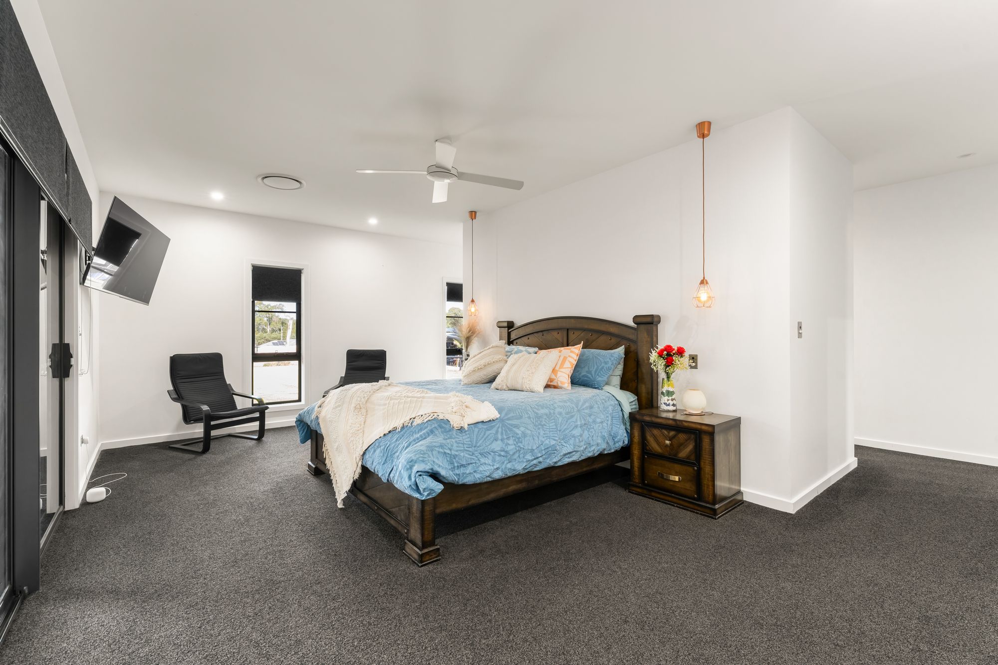 • Luxurious master suite with ducted air conditioning, ceiling fan, pendant bedside lighting, his and hers walk-in robes and an oversized ensuite with dual vanities and a huge walk-in shower