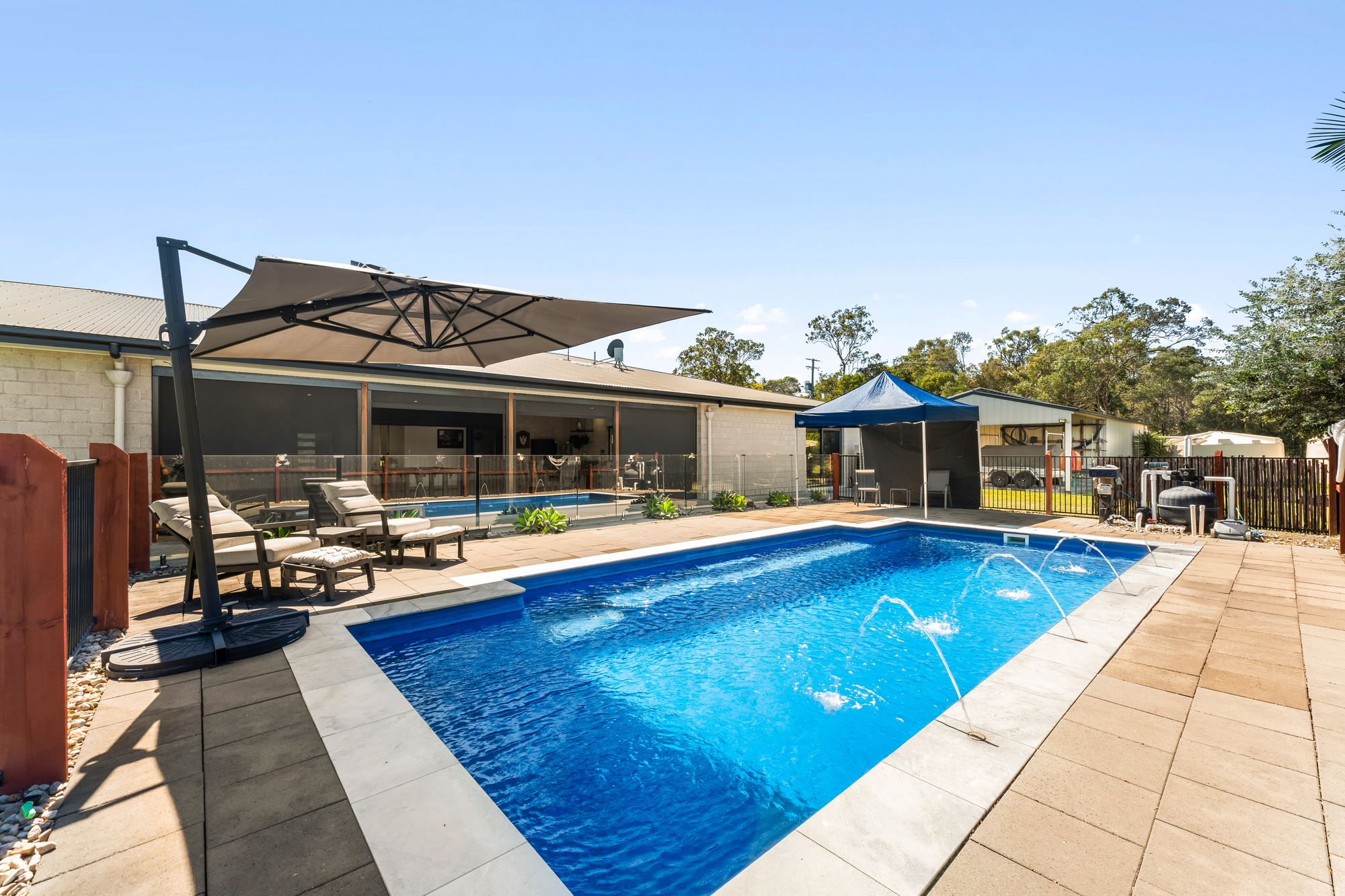 • Stunning in-ground saltwater pool with water features and glass filter system, separately fenced