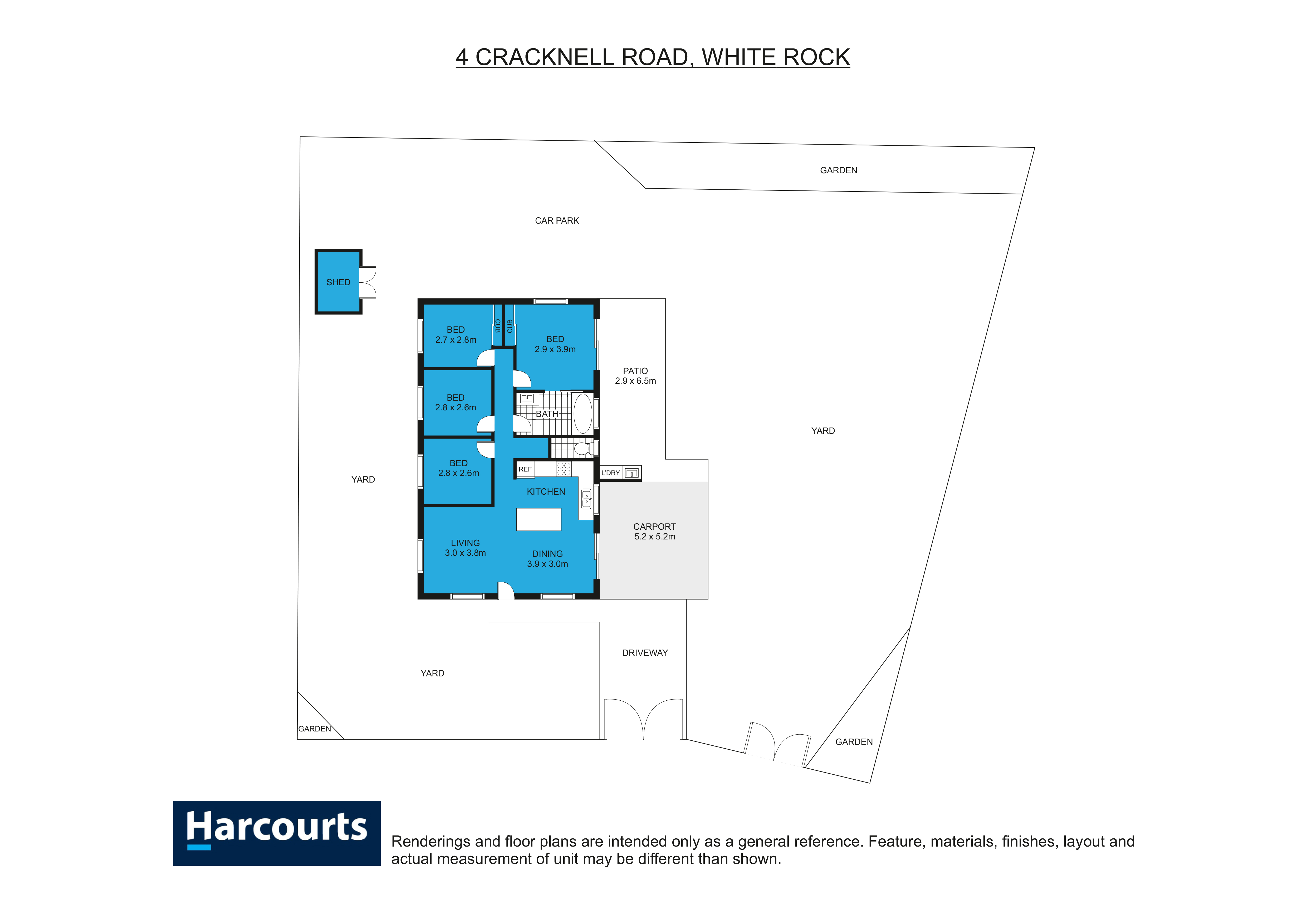 The fully tiled home features open plan living and dining area, serviced by a good size hostess kitchen with island bench. Four generously sized bedrooms, with the two-way bathroom complimenting the master bedroom. The massive fully fenced yard features low maintenance gardens is fully fenced and allows access for larger vehicles or machinery. Large outdoor patio and a carport for two vehicles.