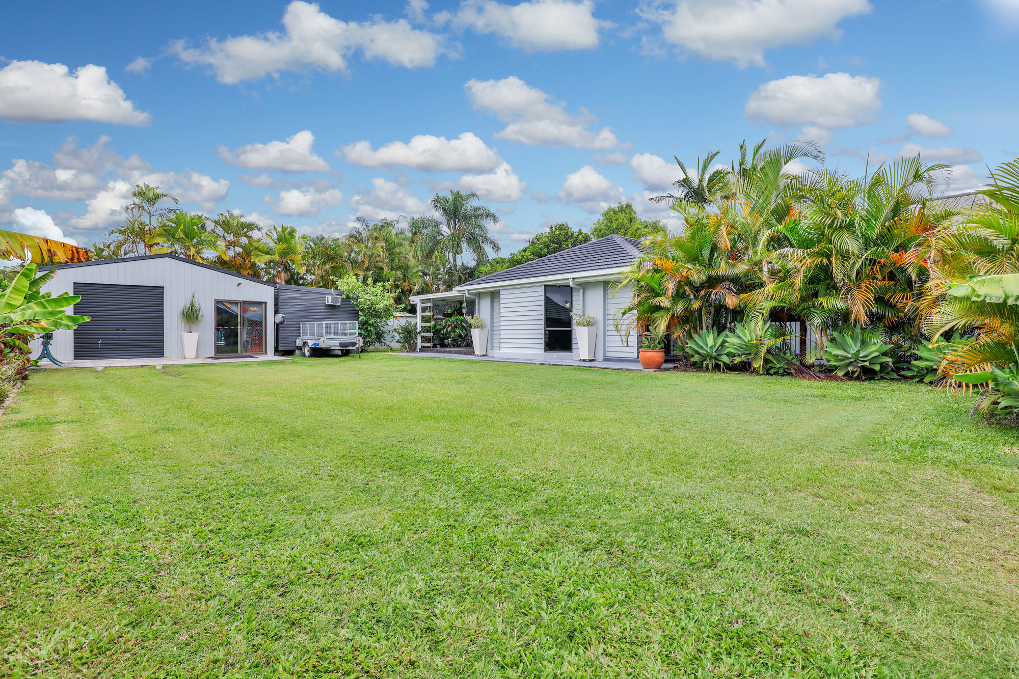 A standout feature of this property is the impressive 7m x 7m powered shed with air conditioning, ideal for a workshop, additional storage, or a home business. The freshly landscaped gardens further enhance the appeal, providing a low maintenance yet picturesque setting.