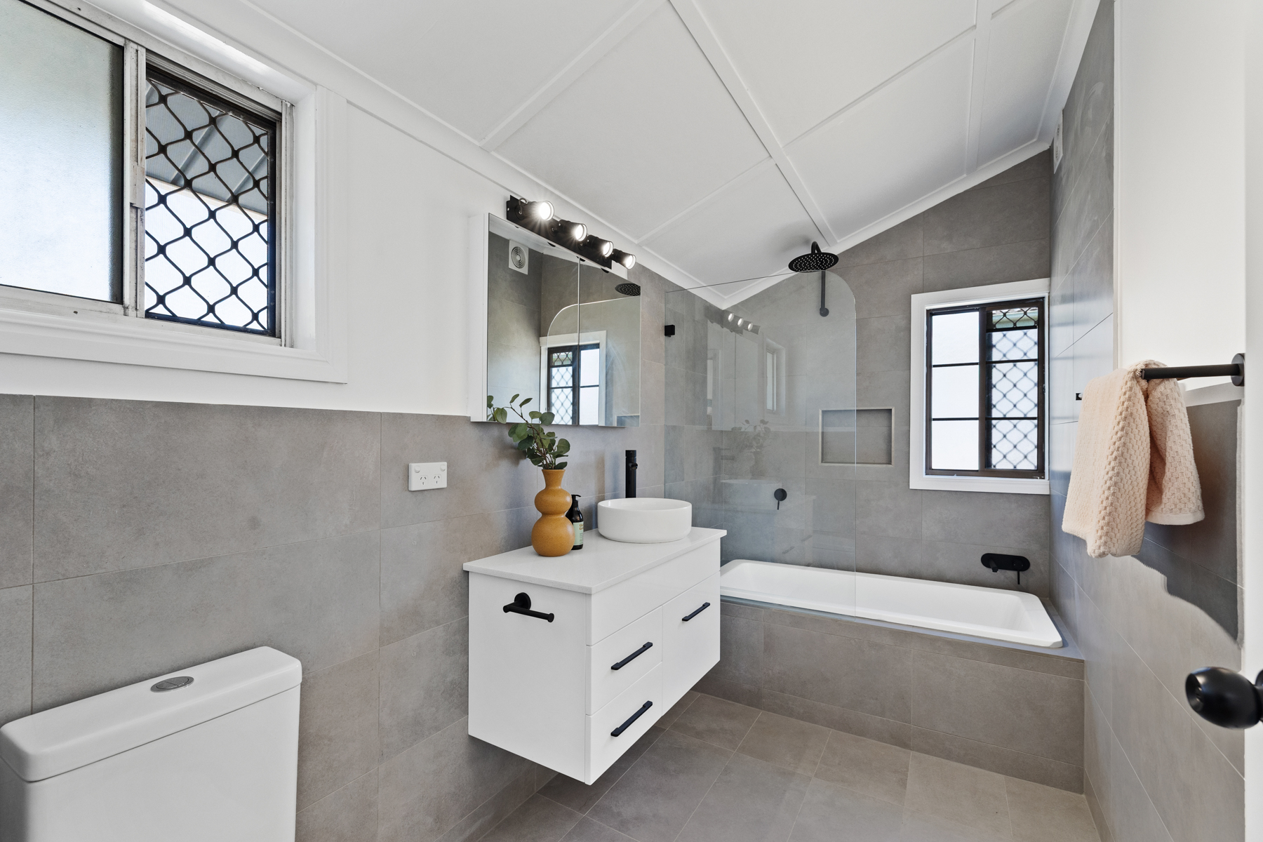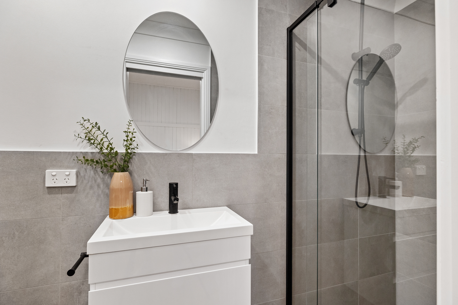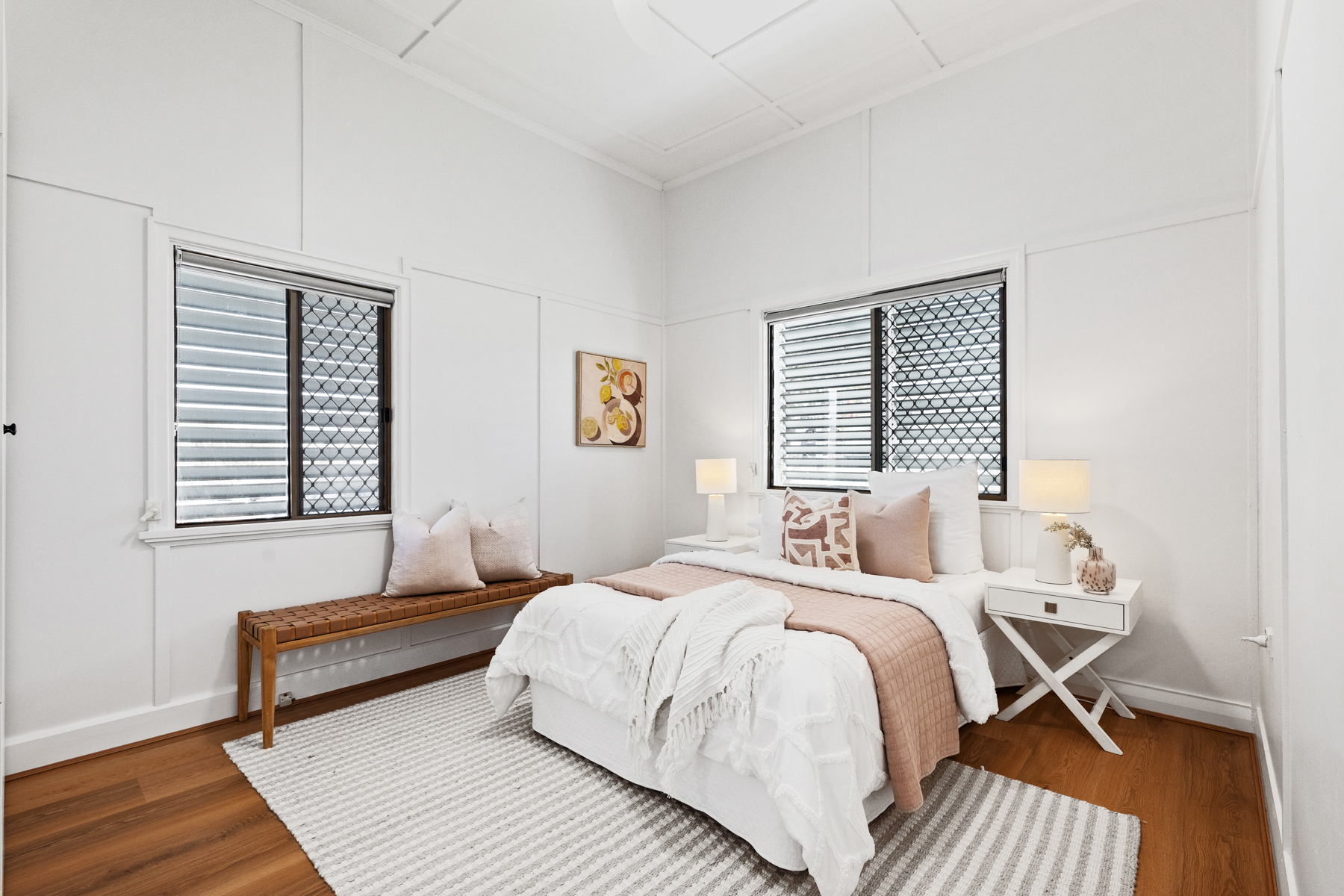 Both bathrooms showcase stylish rain showerheads and luxe fittings, while the bedrooms include built-in robes and plenty of natural light.