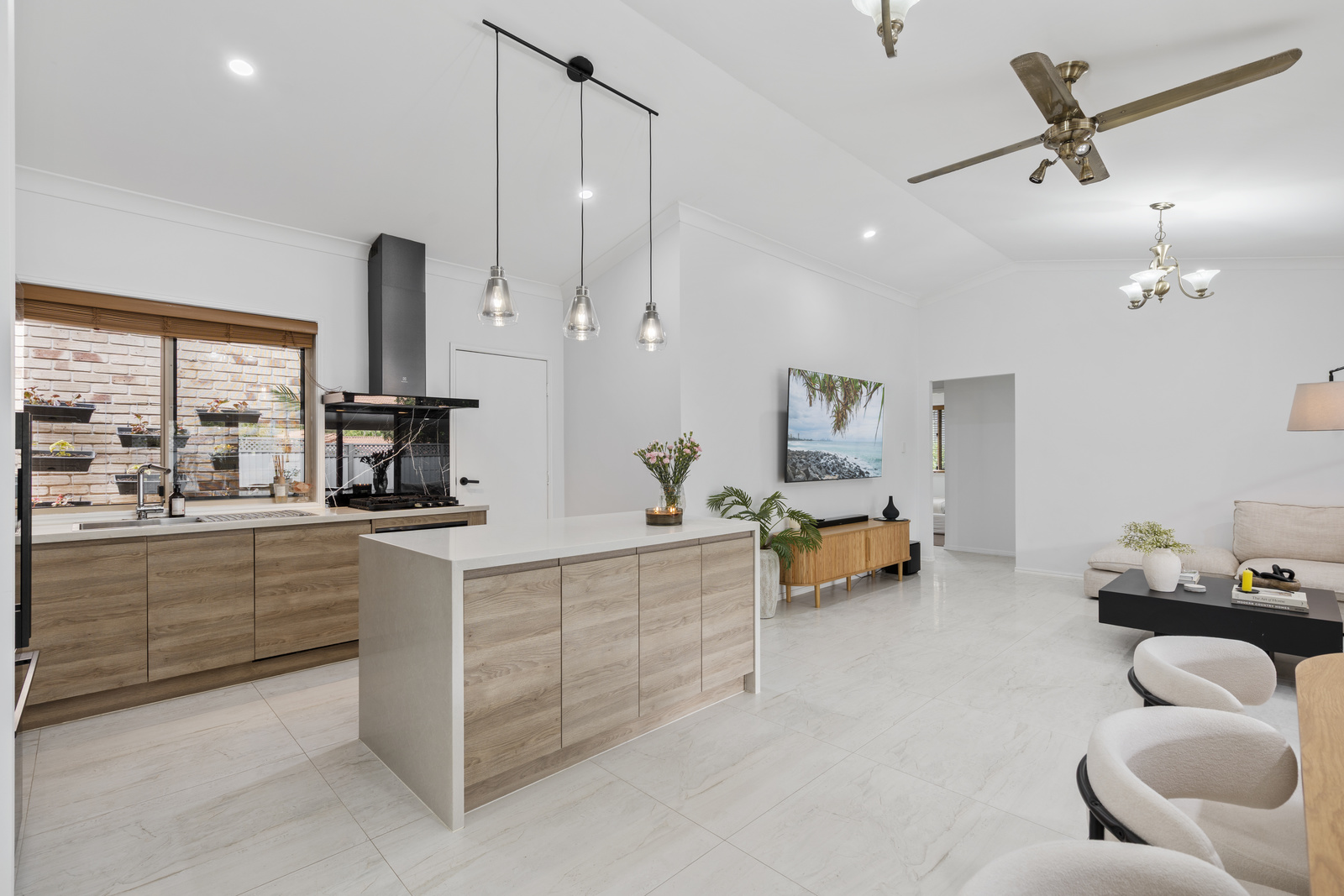 • Built-in BBQ and bar fridge – entertainer’s dream