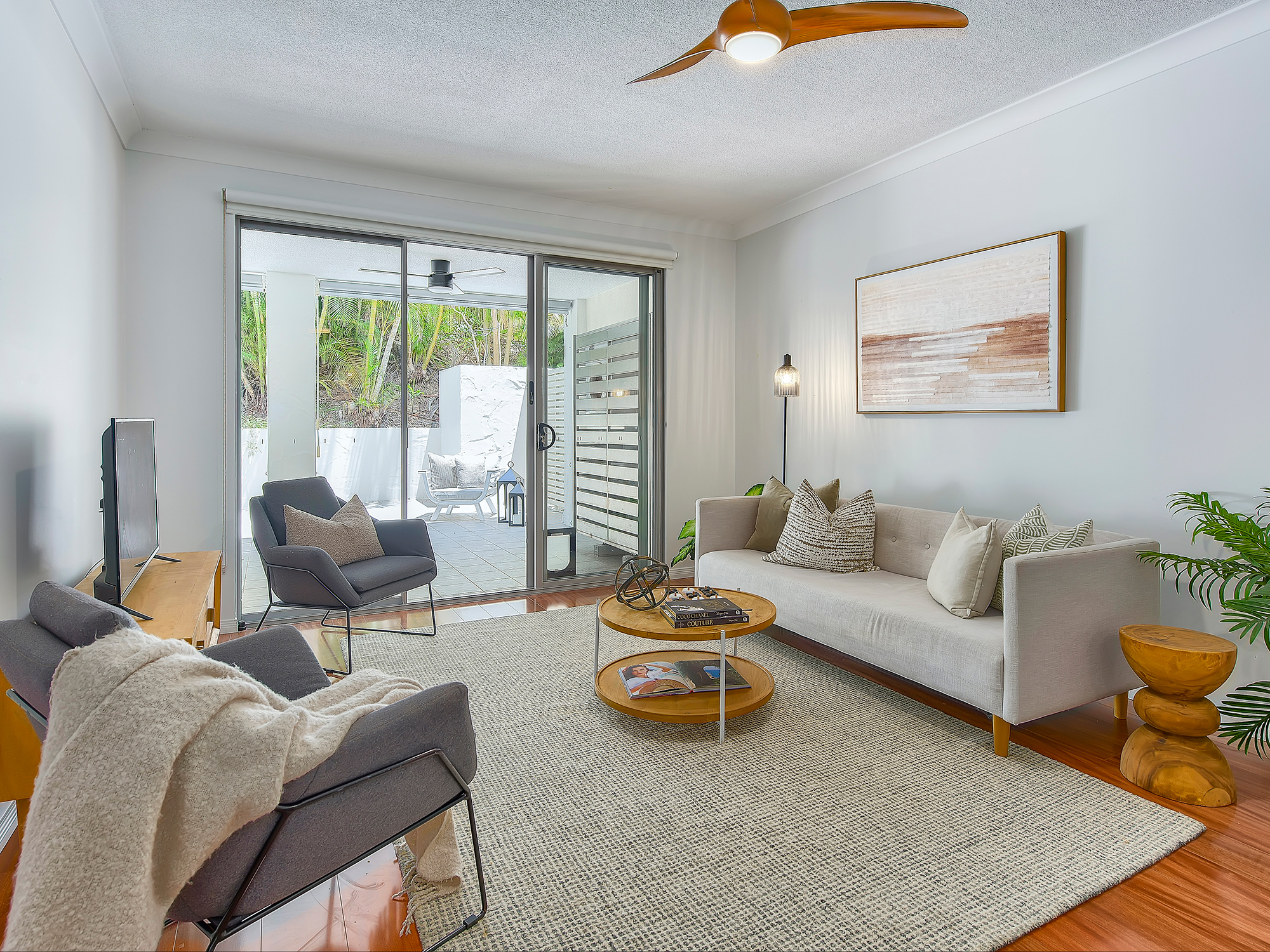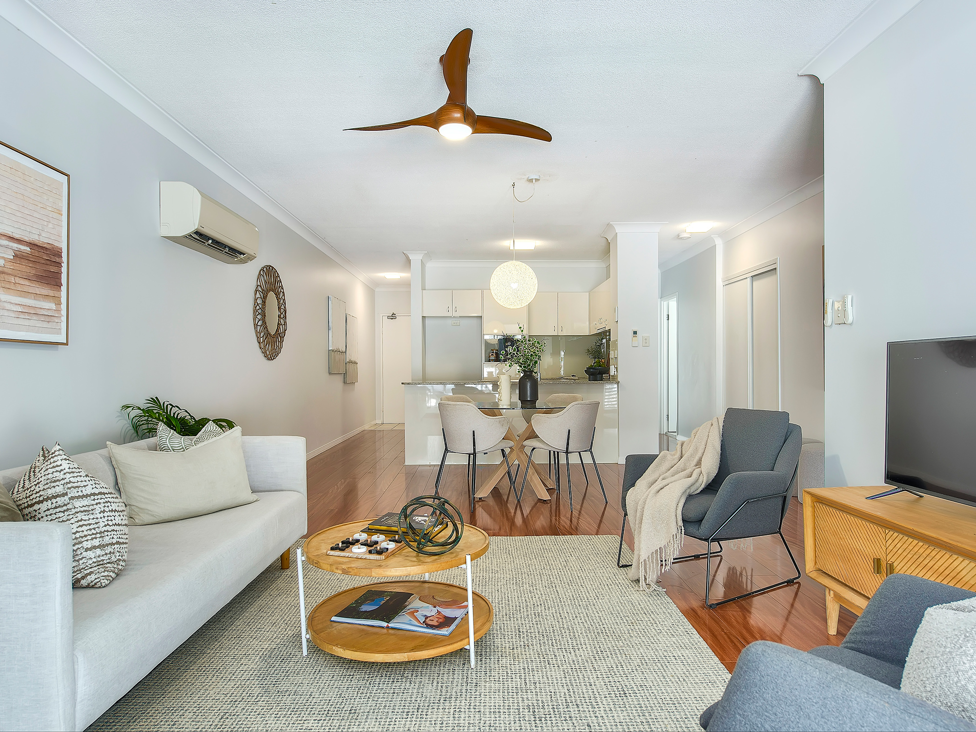 • Air-conditioning to living area, ceiling fans