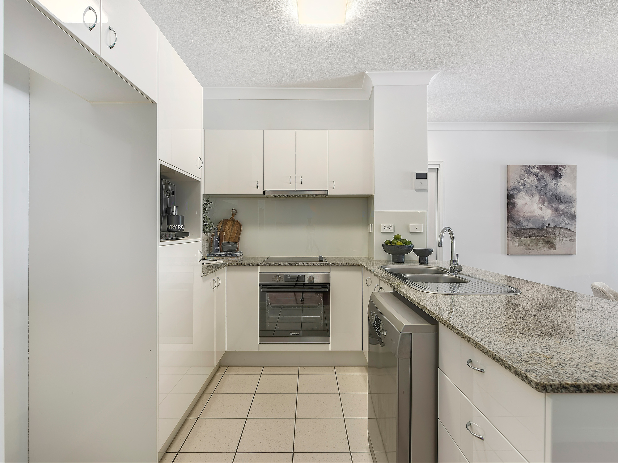 • Contemporary kitchen with stone benchtops, dishwasher & ample storage