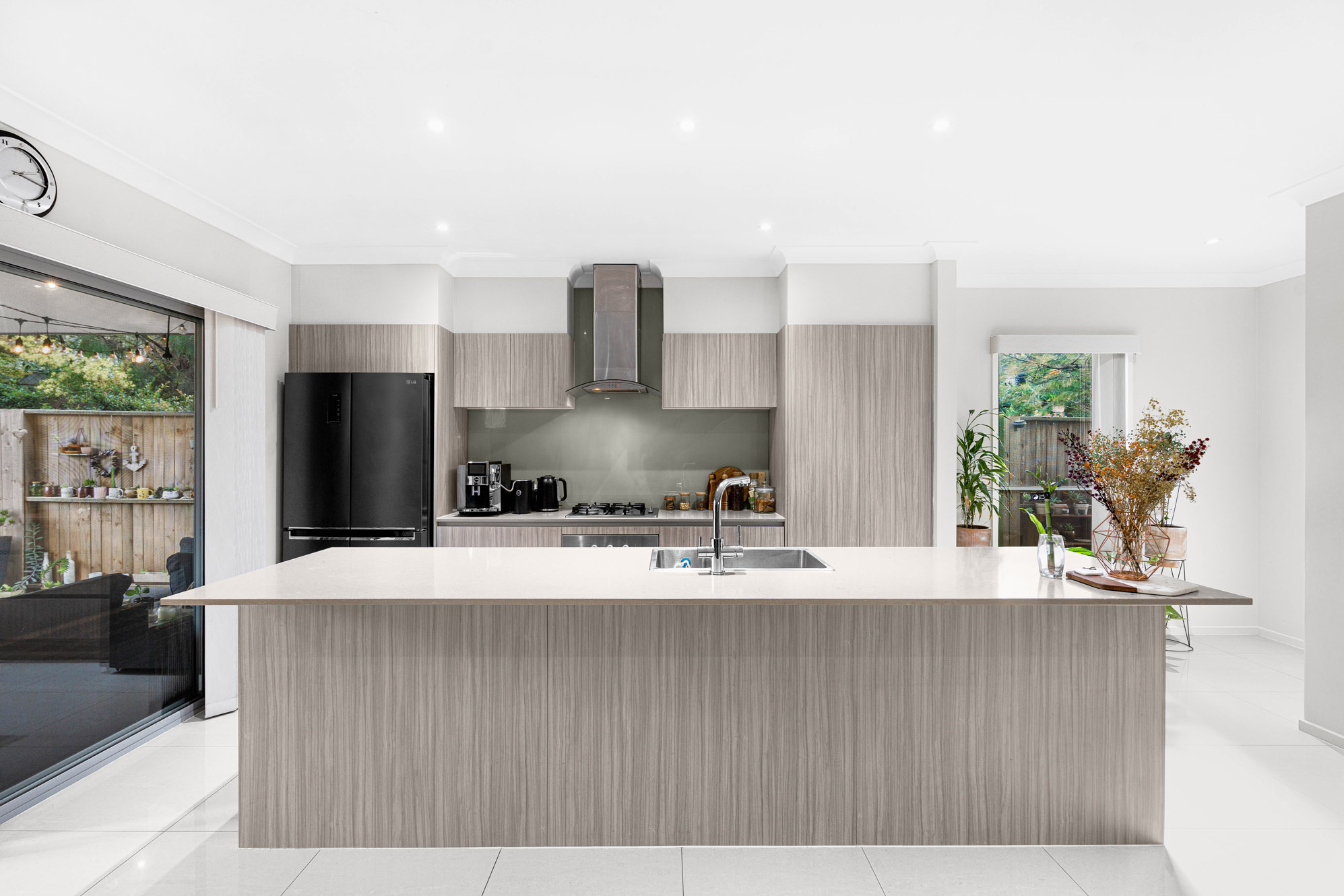 – Open kitchen with a full suite of Bosch appliances including a dishwasher, stone benchtops and an integrated water filtration system