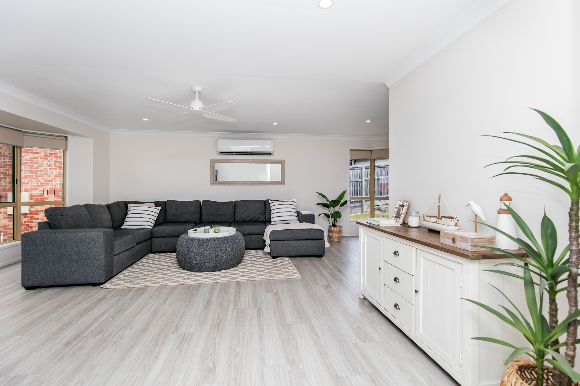 • Multiple living areas (one with a split system air conditioner)