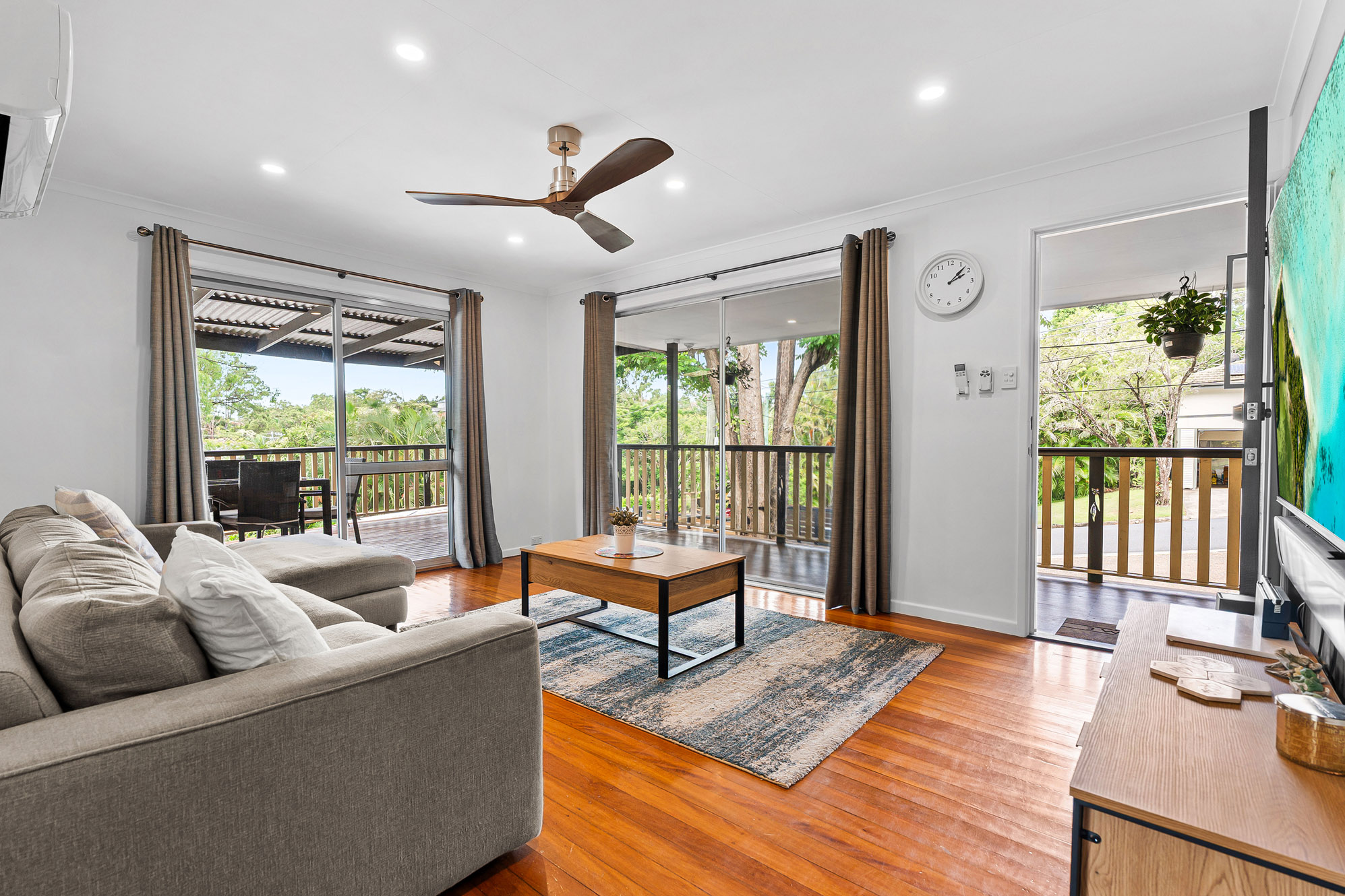 • Upstairs features a living room with air conditioning and timber floors, opening to a spacious wraparound deck that is perfect for family gatherings and weekend barbecues