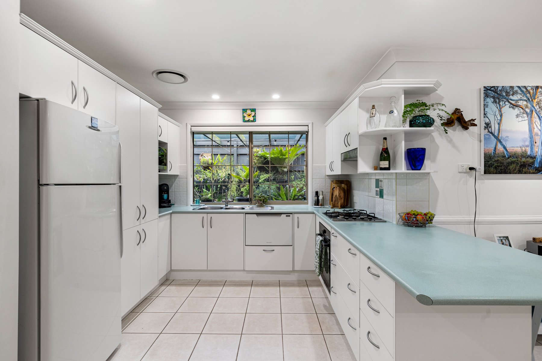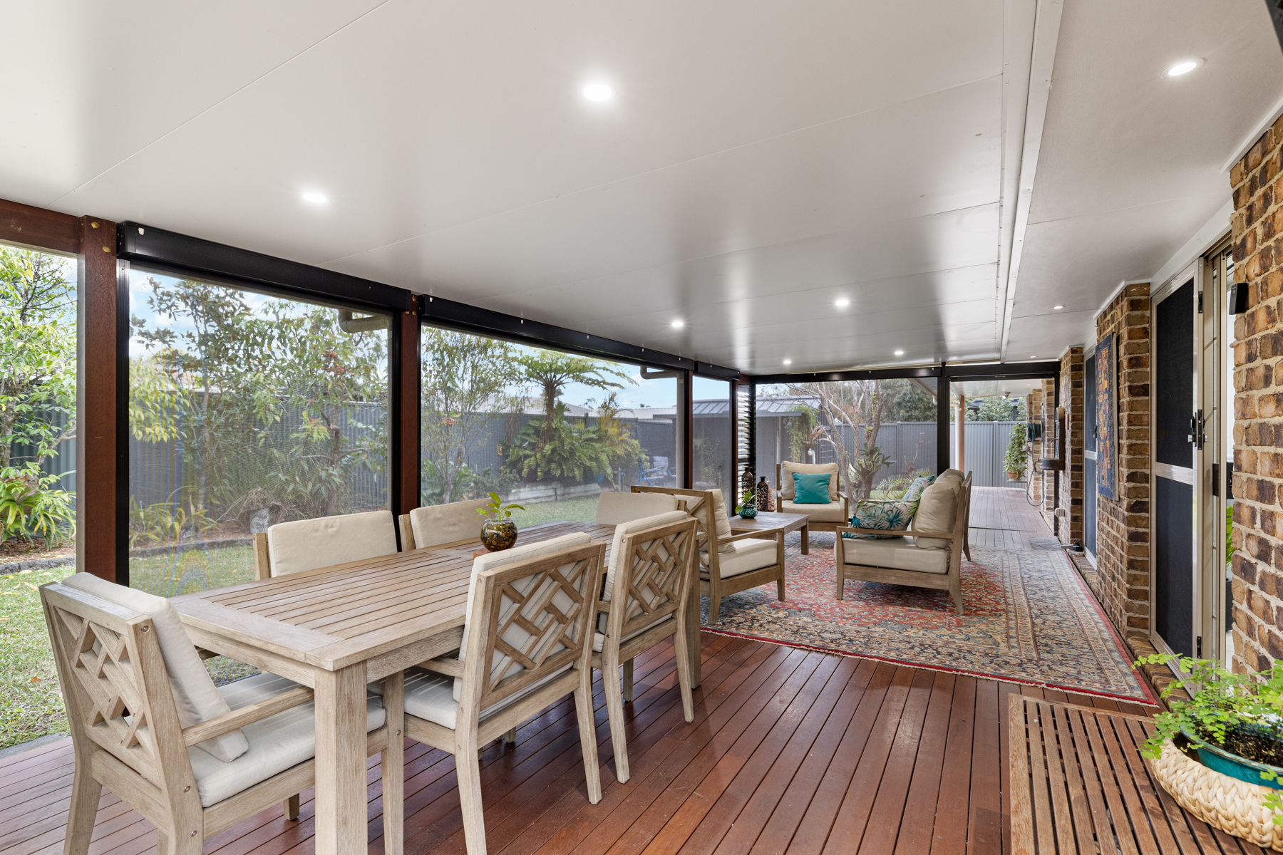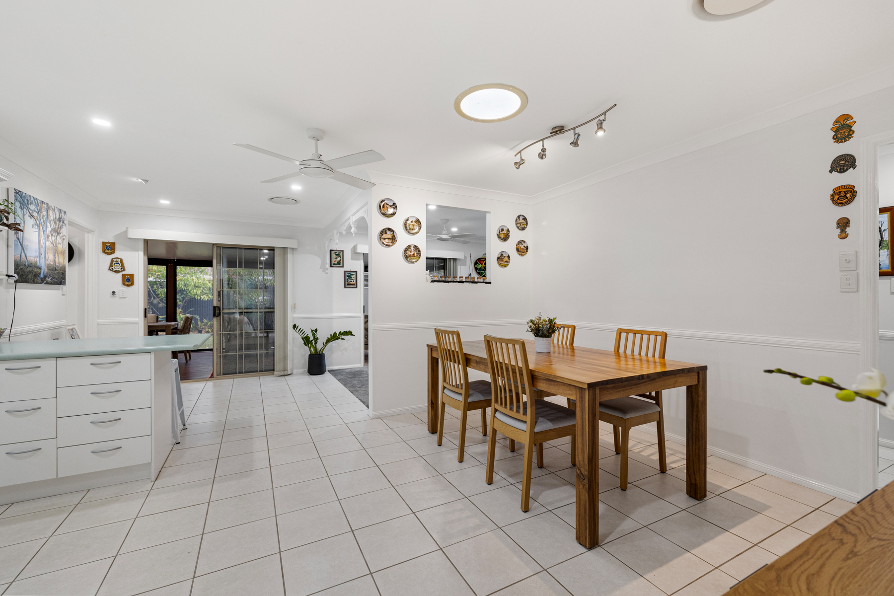 The spacious living area flows seamlessly to the kitchen and dining area, complete with gas cooktop, electric oven, dishwasher, and a full-length breakfast bar. Entertain with ease on the expansive covered deck, ideal for weekend barbecues, overlooking the backyard.