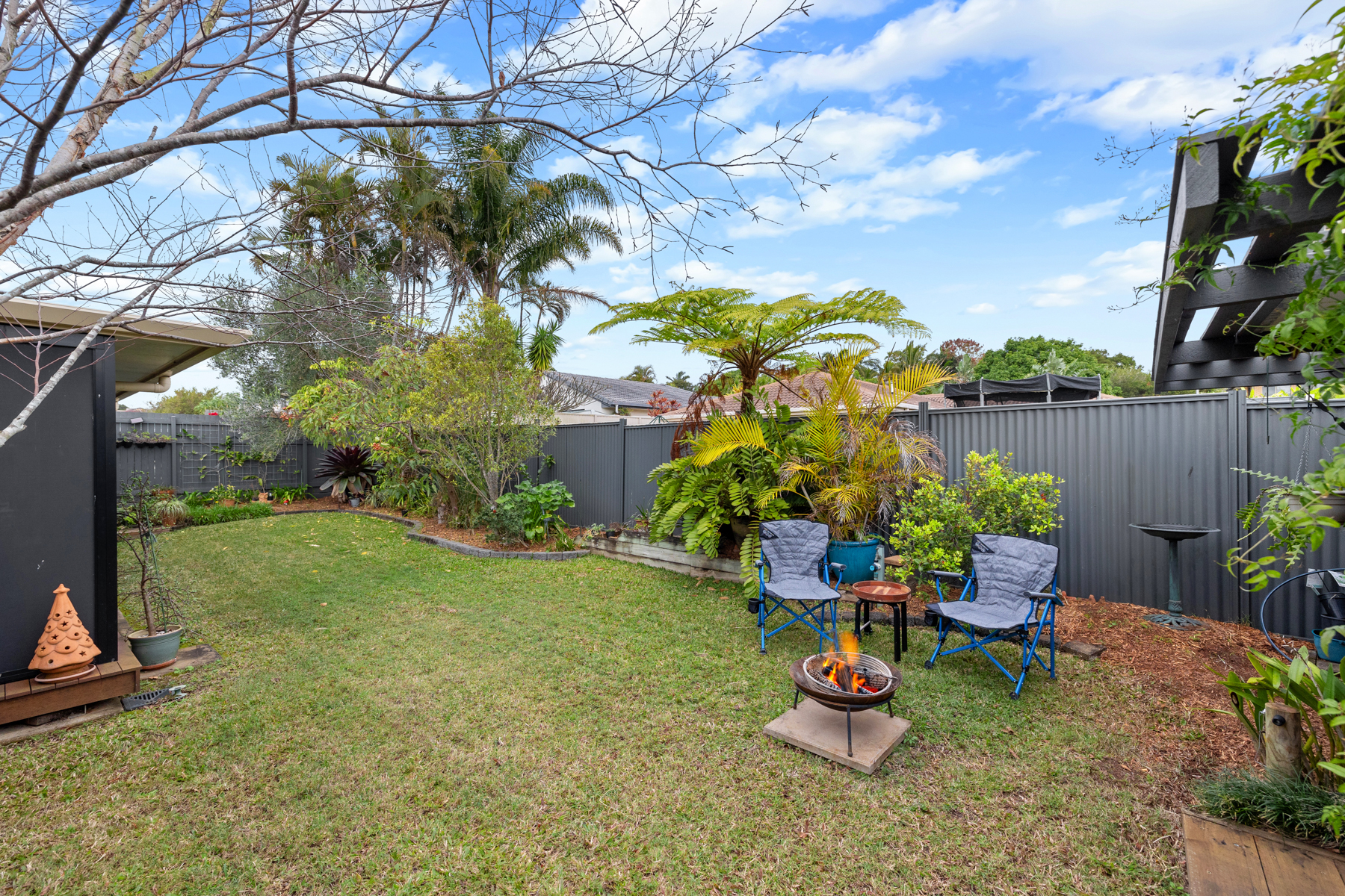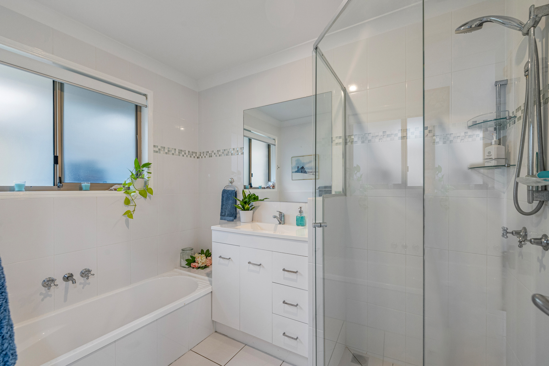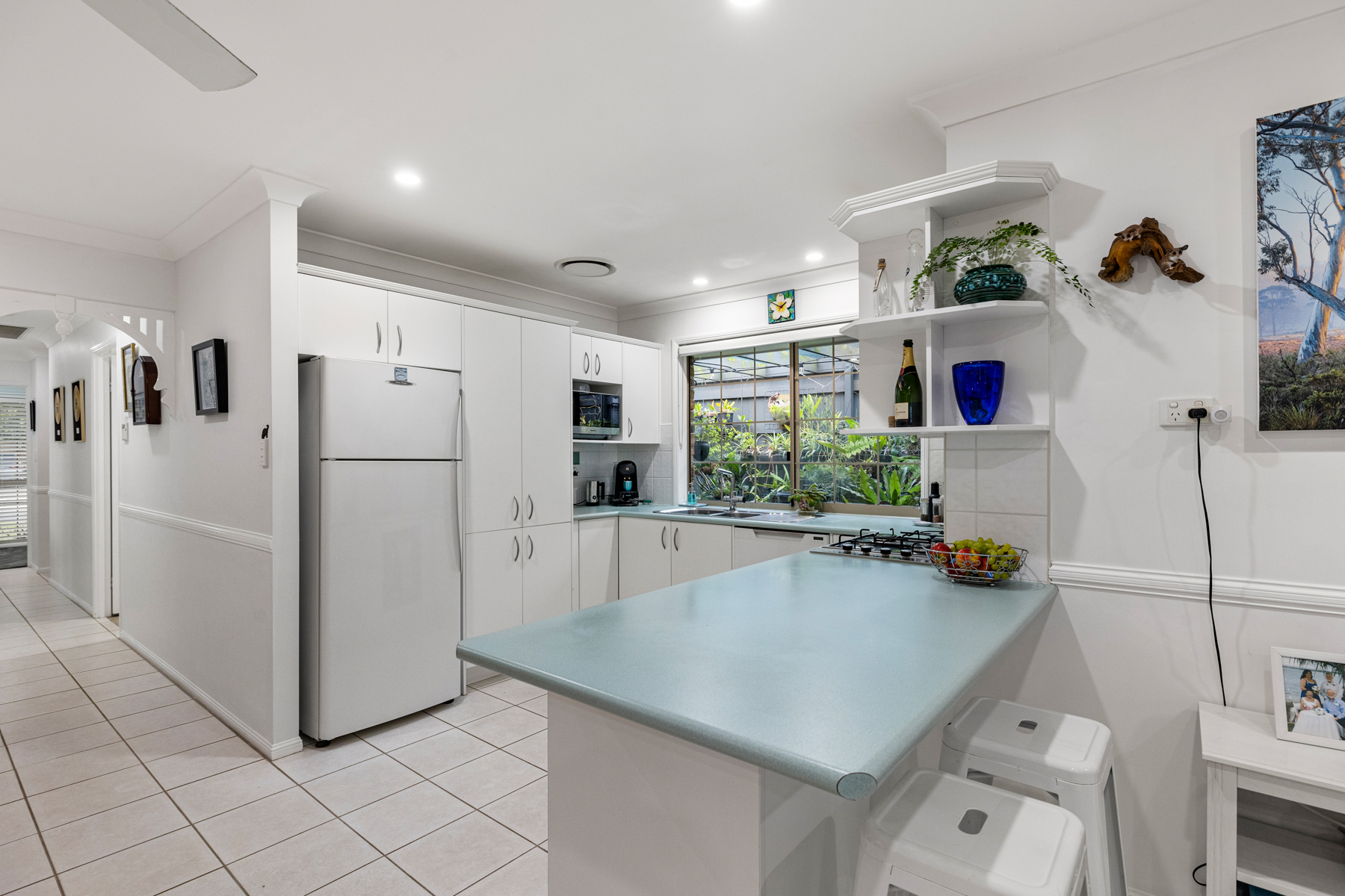 The spacious living area flows seamlessly to the kitchen and dining area, complete with gas cooktop, electric oven, dishwasher, and a full-length breakfast bar. Entertain with ease on the expansive covered deck, ideal for weekend barbecues, overlooking the backyard.