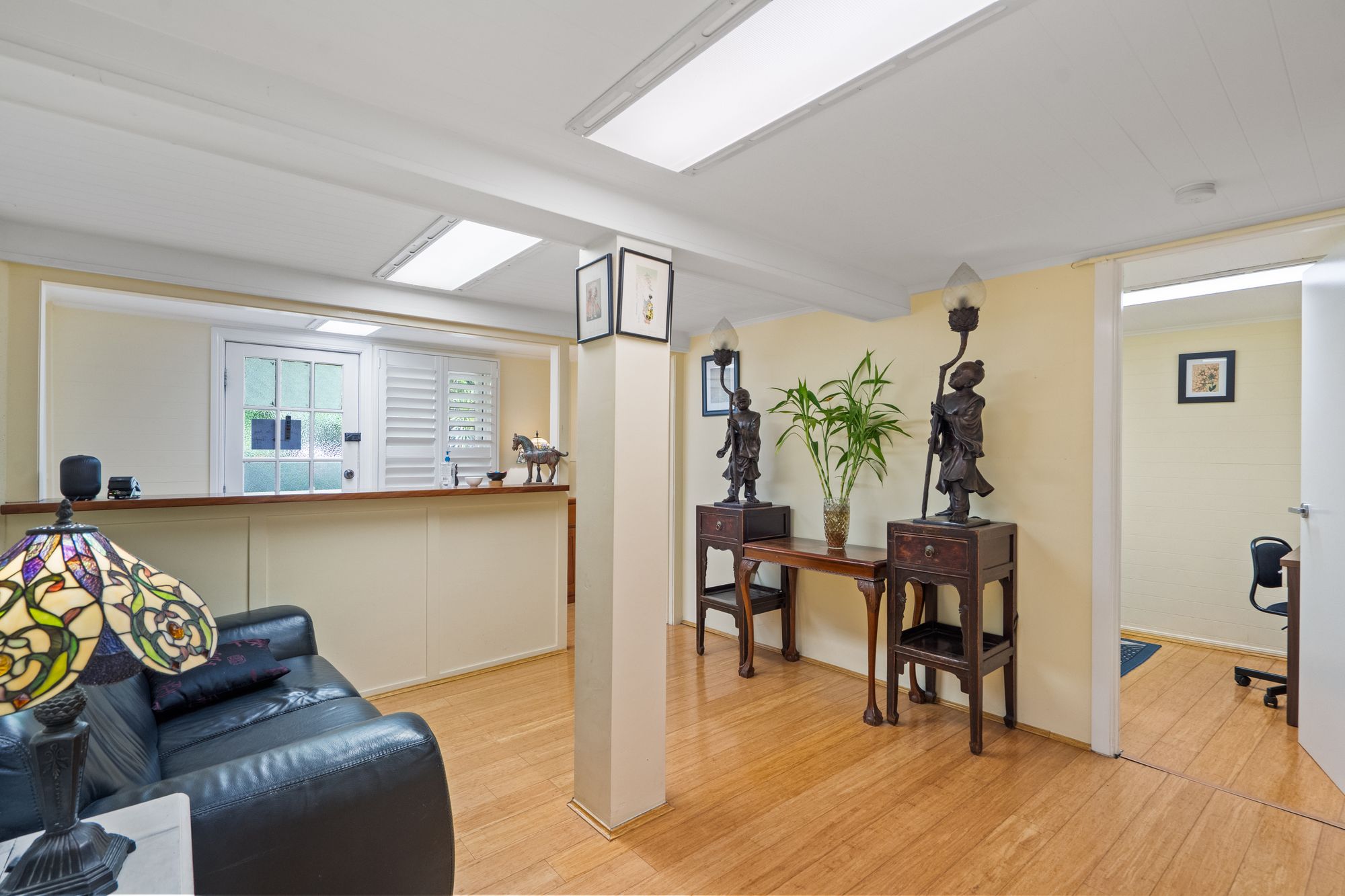The lower level is fully air-conditioned and ideal for a home business, professional practice, or additional living space. With its own entrance, reception area, multiple rooms, kitchenette, bathroom and extensive storage, the layout can be easily adapted to suit a wide range of uses.