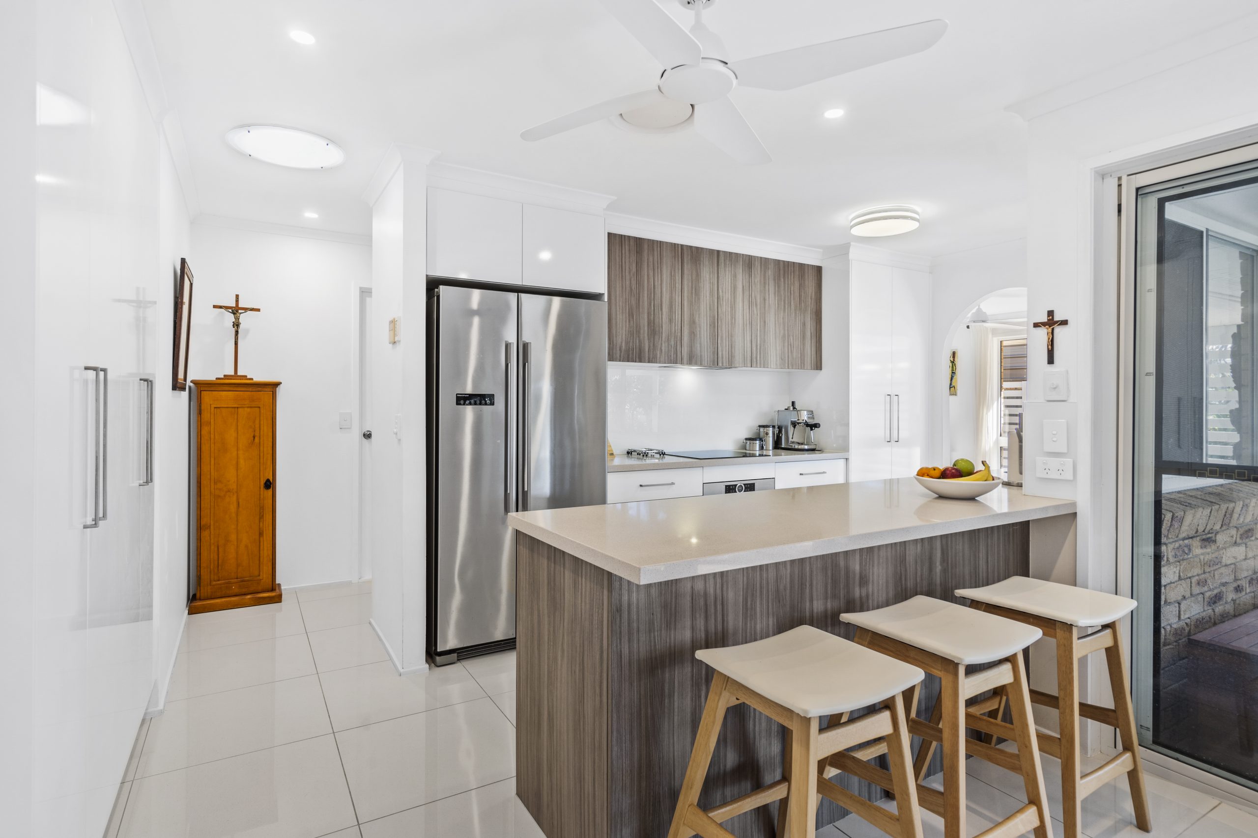 * Central chef’s kitchen with stone bench-tops