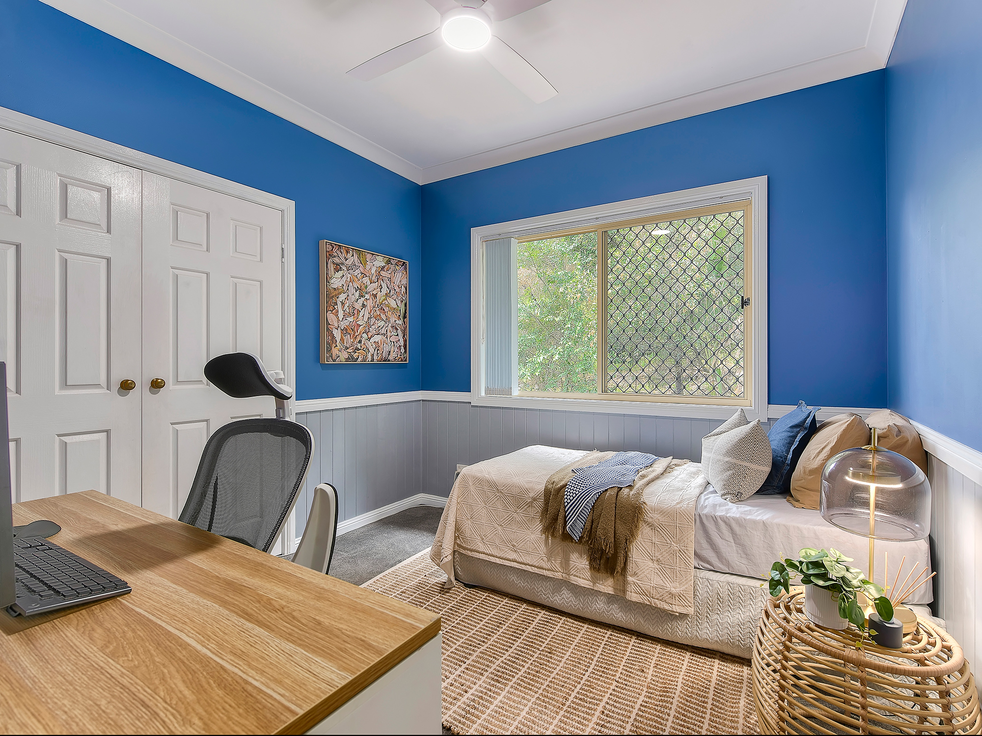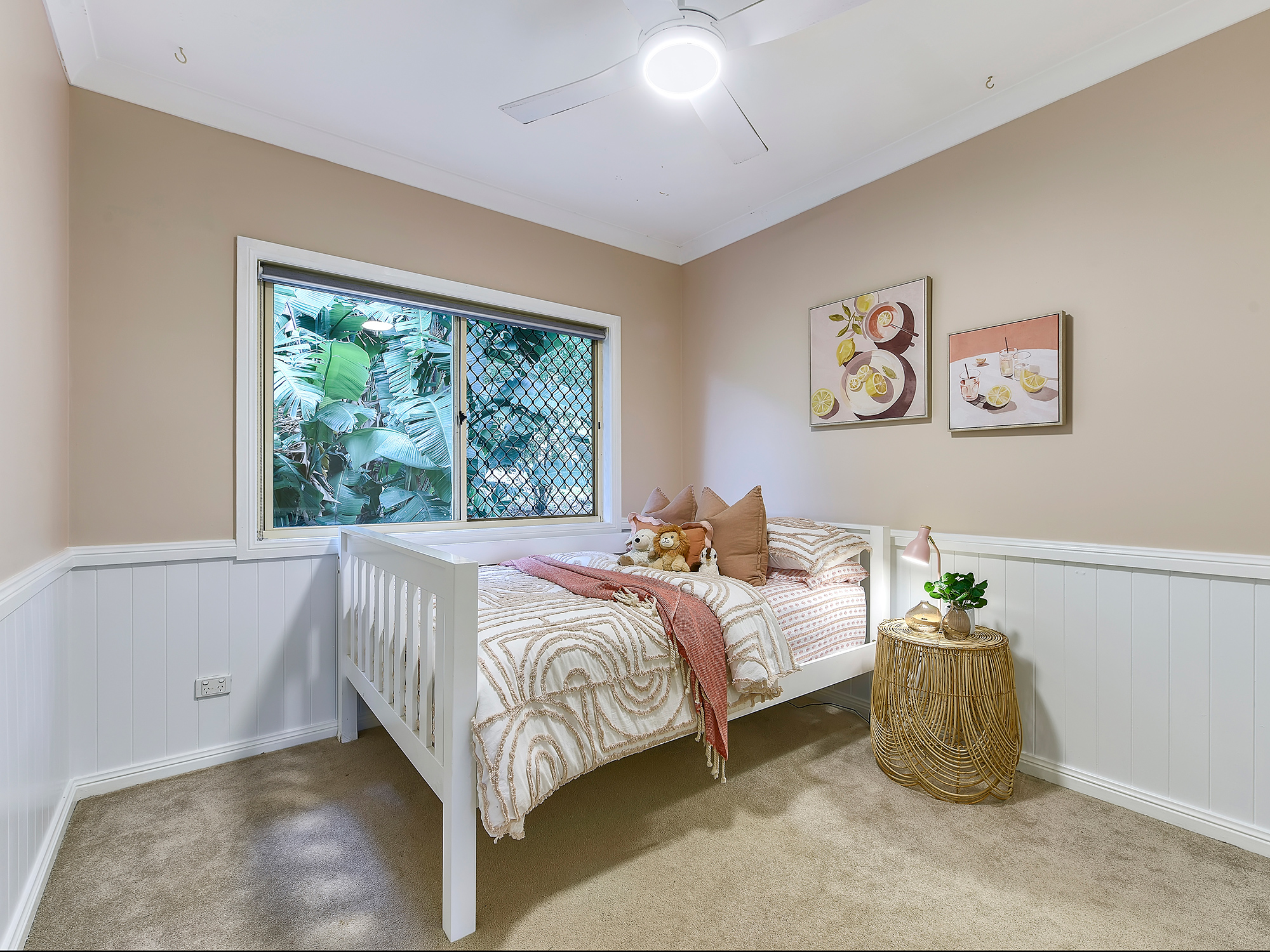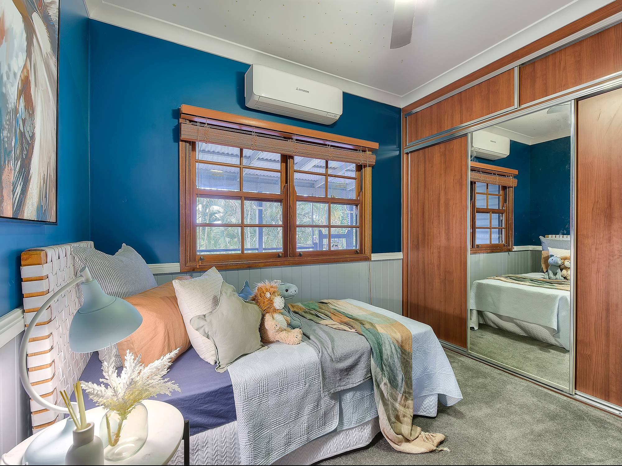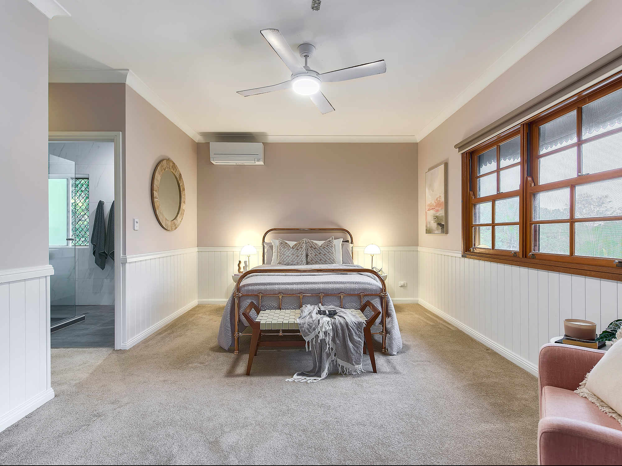 – Open-plan living and dining with wainscoting, air-conditioning and timber floors