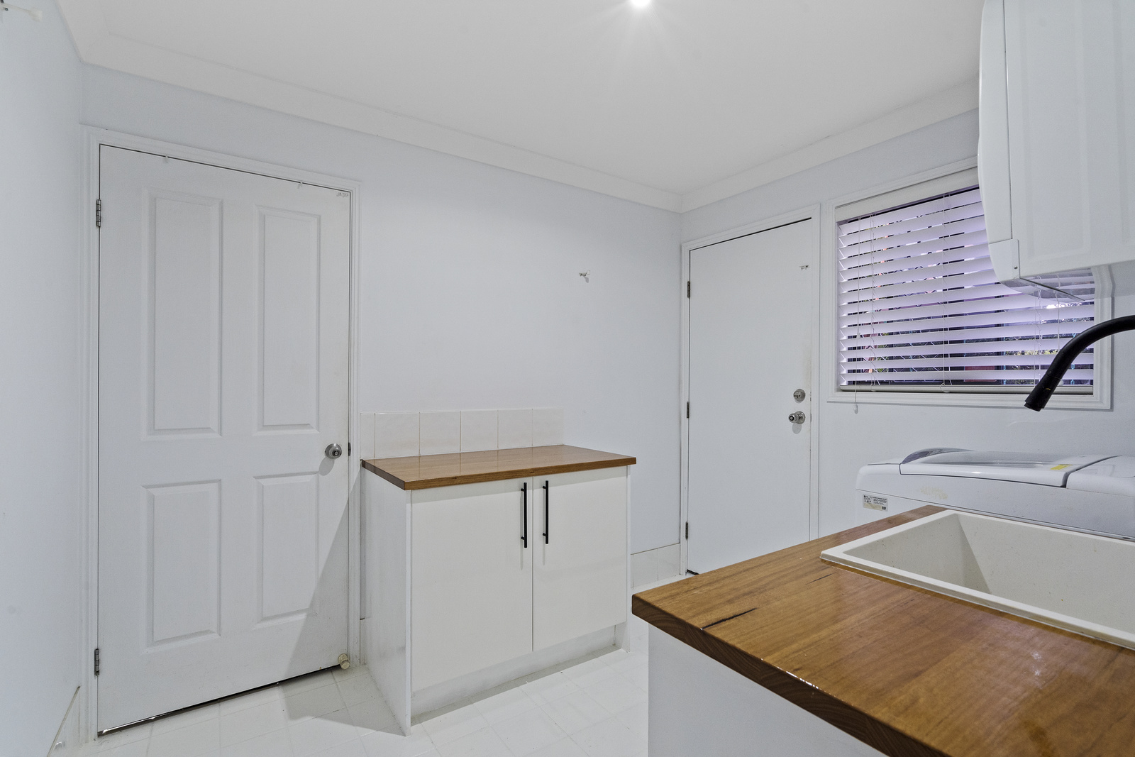 • Timber flooring throughout, plus Blackbutt shelving and benchtops in the laundry, powder room, and upstairs bathroom