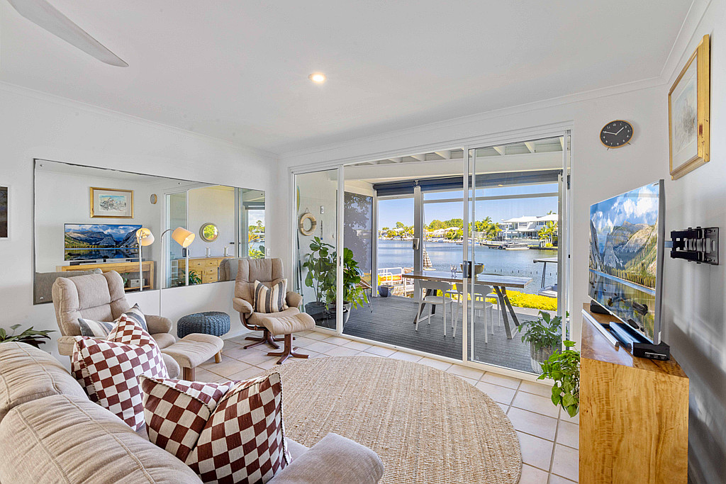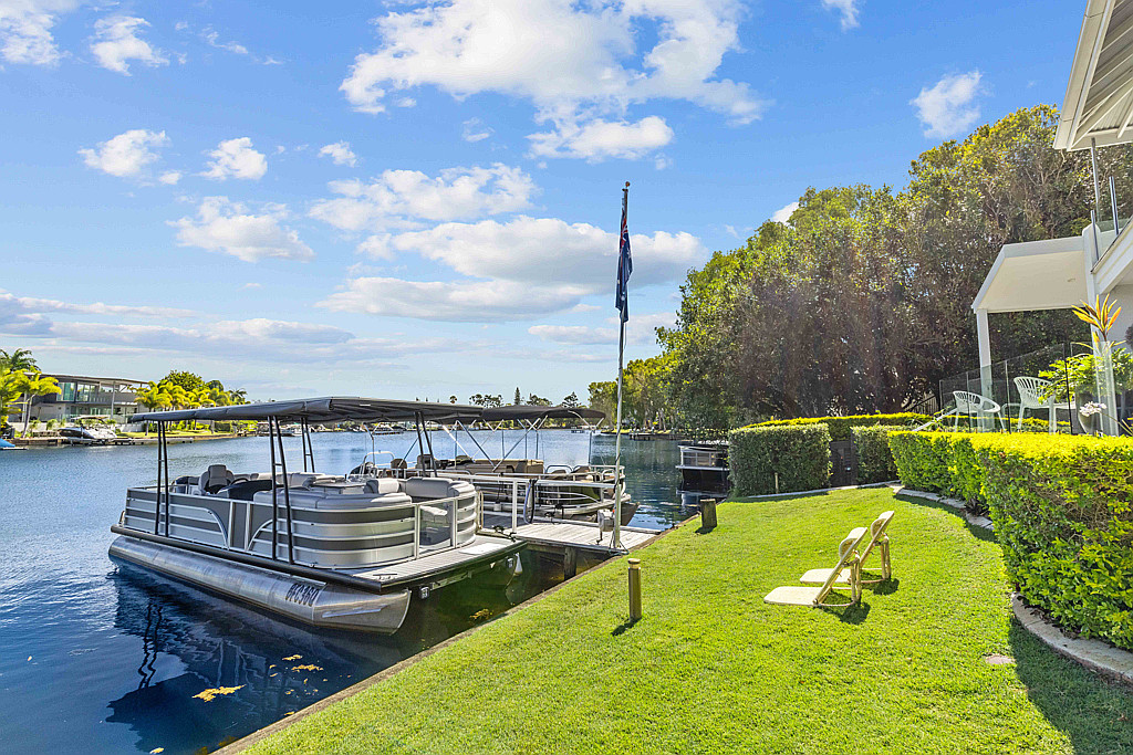Adding appeal is the double lock up garage, outdoor kitchen wine fridge & BBQ, spilt system heating and cooling, 5.5kw solar system, excellent storage and access to the resort-style amenities of multiple jetties where your boat can be moored permanently and a shared pool.