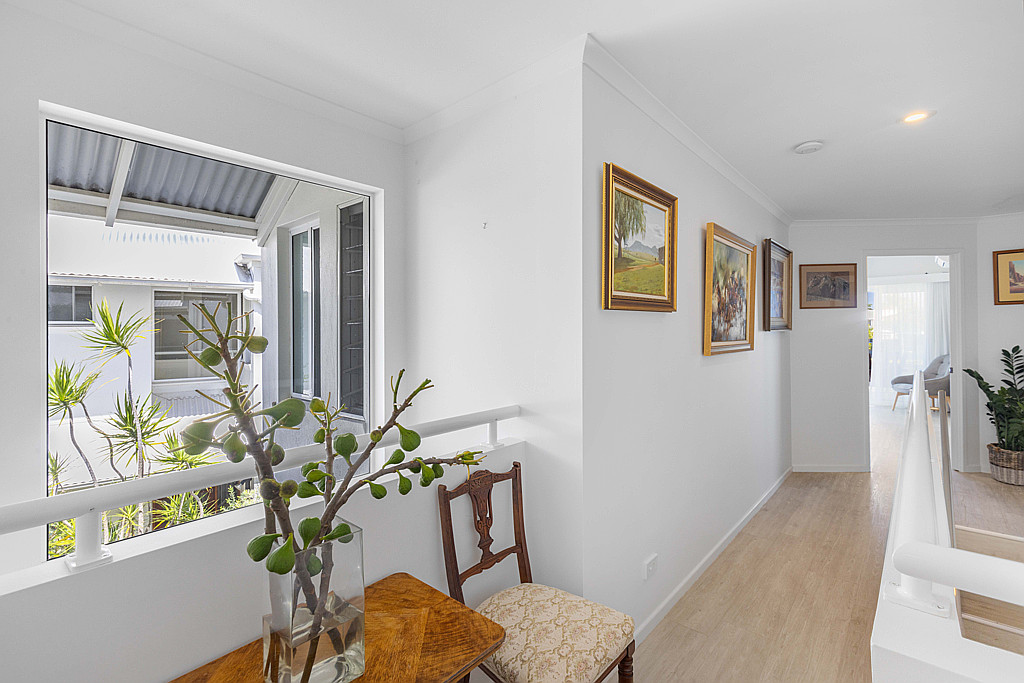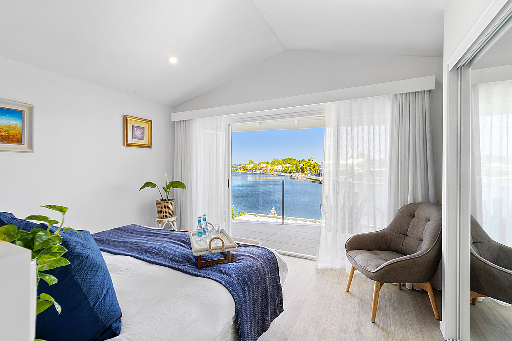 Upstairs comprises of the master bedroom with uninterrupted canal views, high vaulted ceilings and waterfront balcony. A generous ensuite and walk in robe finish the master wishlist. The second bedroom and second bathroom are located just down the hall on the second storey.