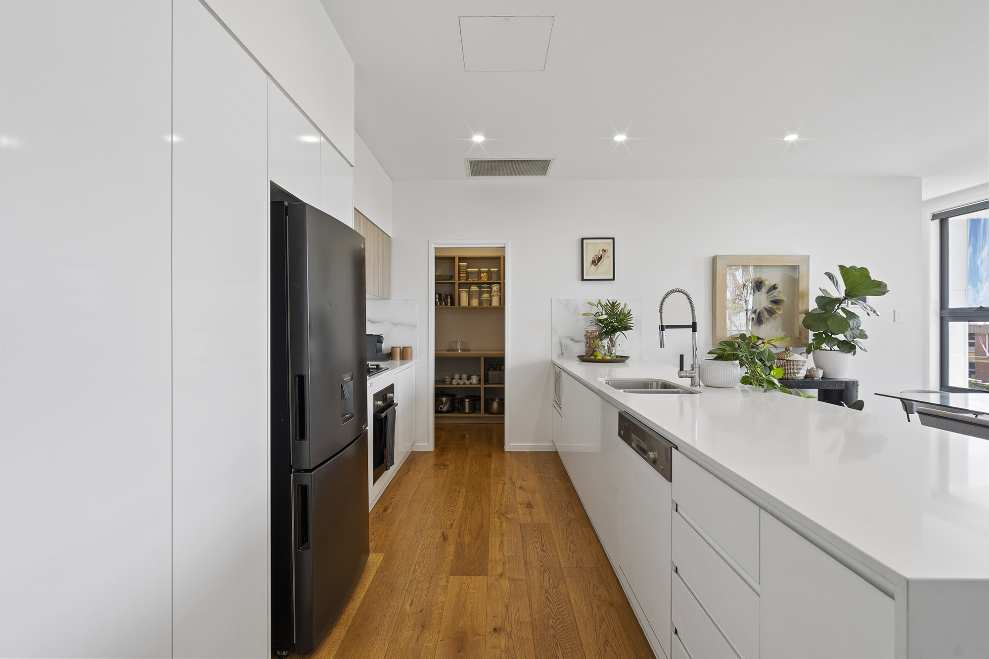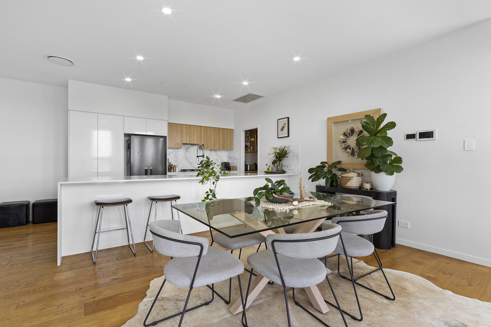 The first level is designed for dual living and ultimate privacy, featuring a large 4th bedroom/rumpus with a kitchenette, ensuite, and direct access to the backyard. The BOSCH gas stove and oven, sink, dishwasher and bench space in the kitchenette offer convenience and versatility.