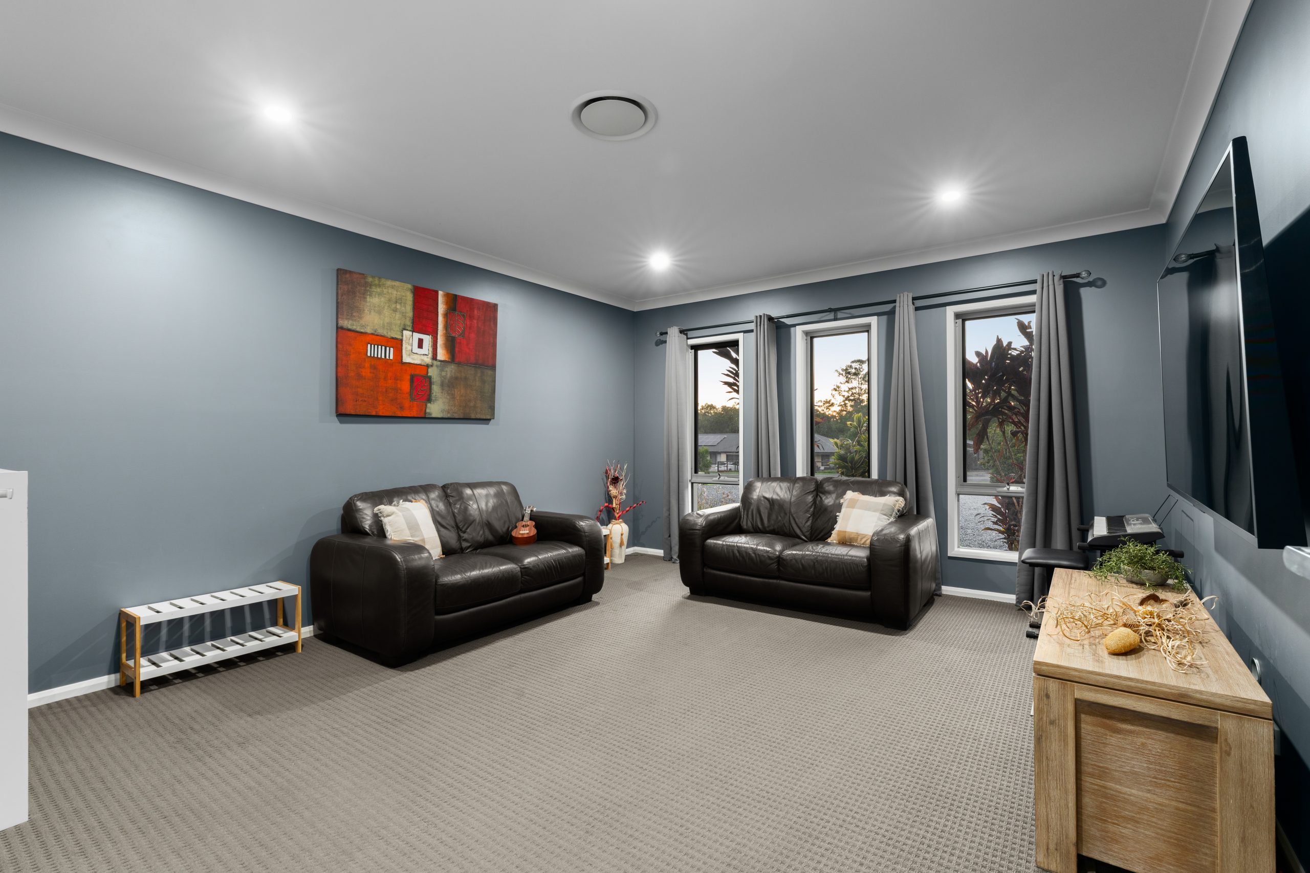 From the moment you arrive, the home makes a striking first impression with its double door entry and unique centre garden feature, while inside the residence opens up to reveal raked ceilings and expansive living zones that create a sense of space, light and sophistication. Multiple living areas ensure there is room for the whole family to relax, entertain and enjoy the peaceful acreage lifestyle that the Aspect Estate is renowned for.