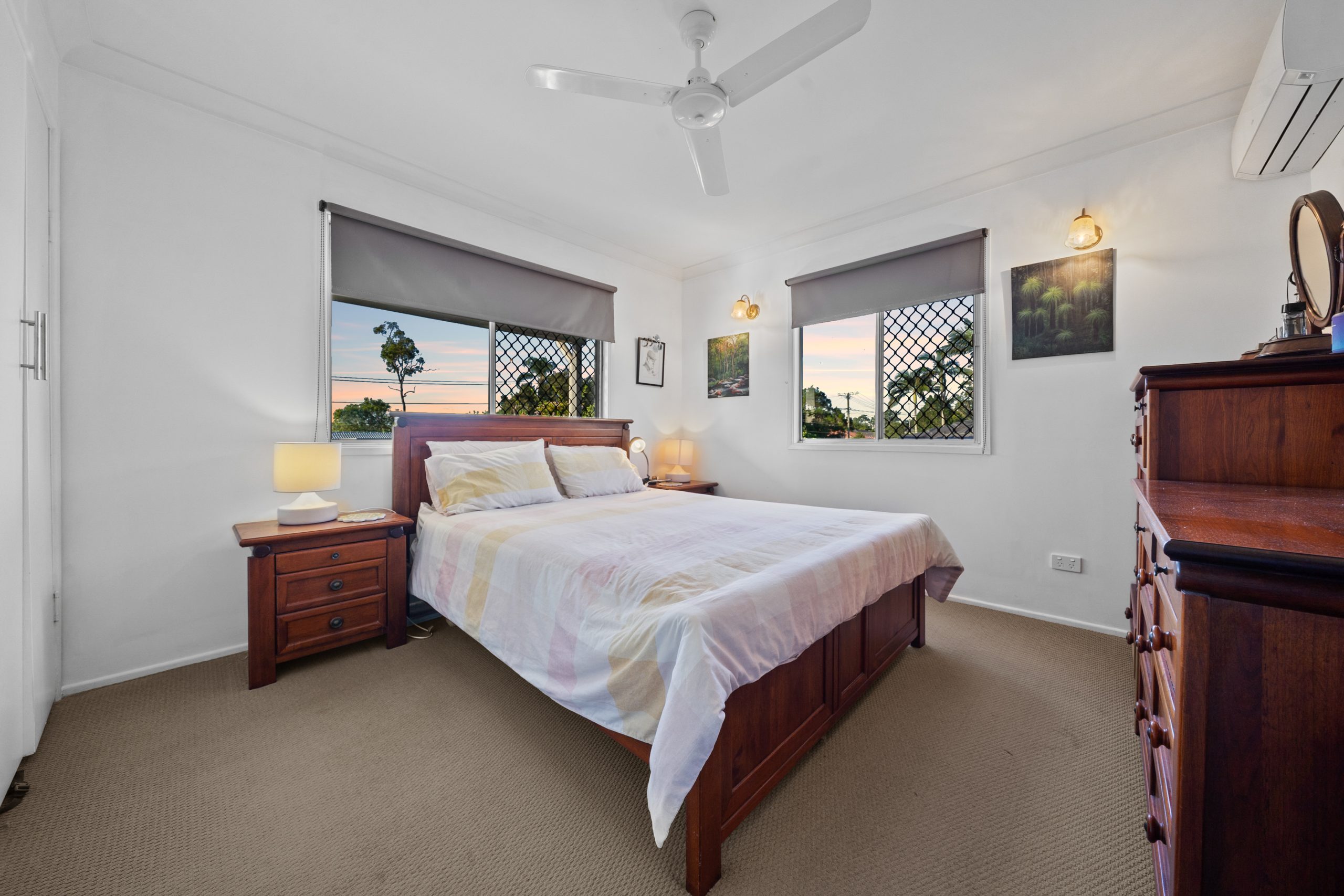 – Four generous bedrooms with carpets and ceiling fans